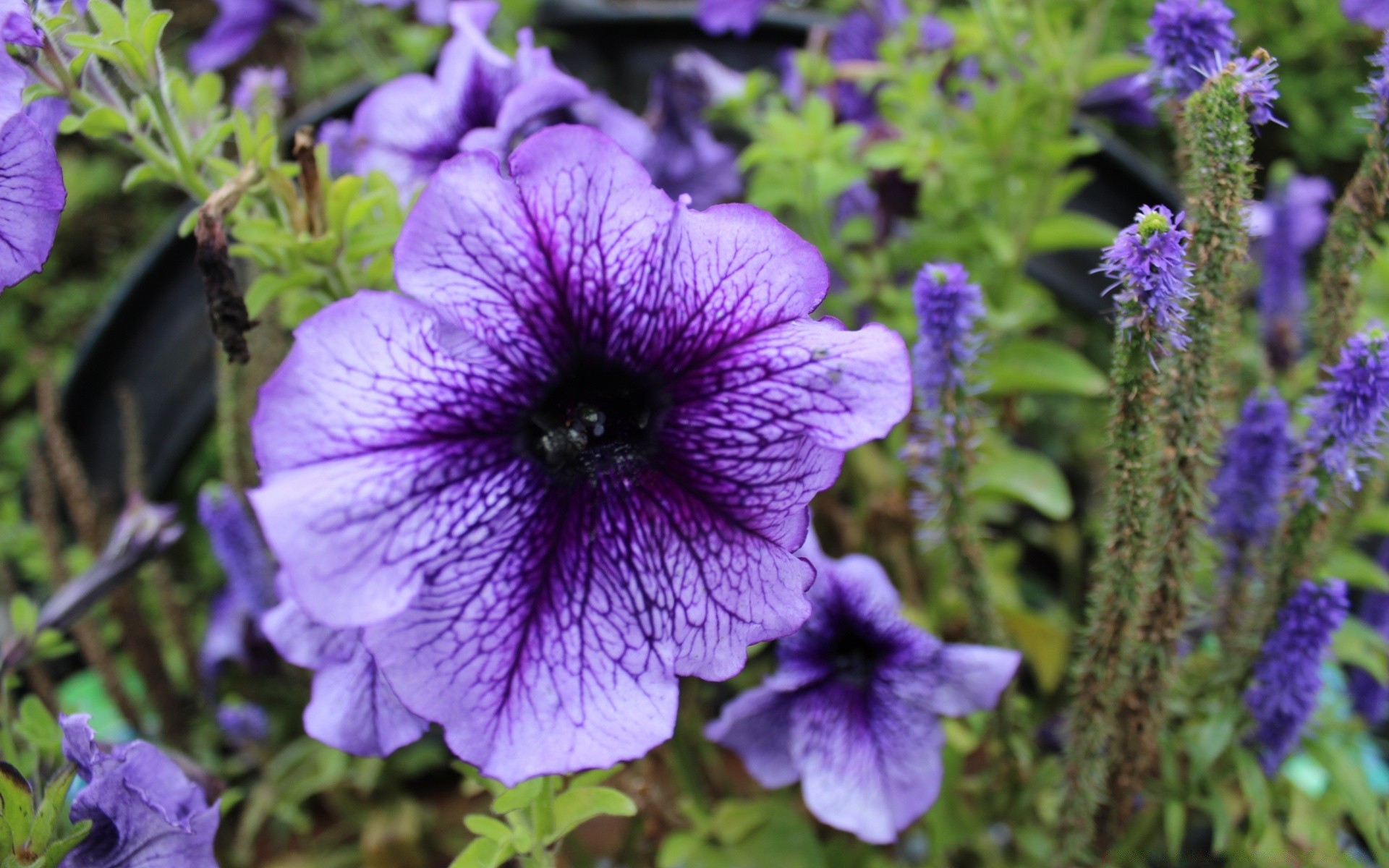 Fotografia macro. As flores são azuis. Desfocagem