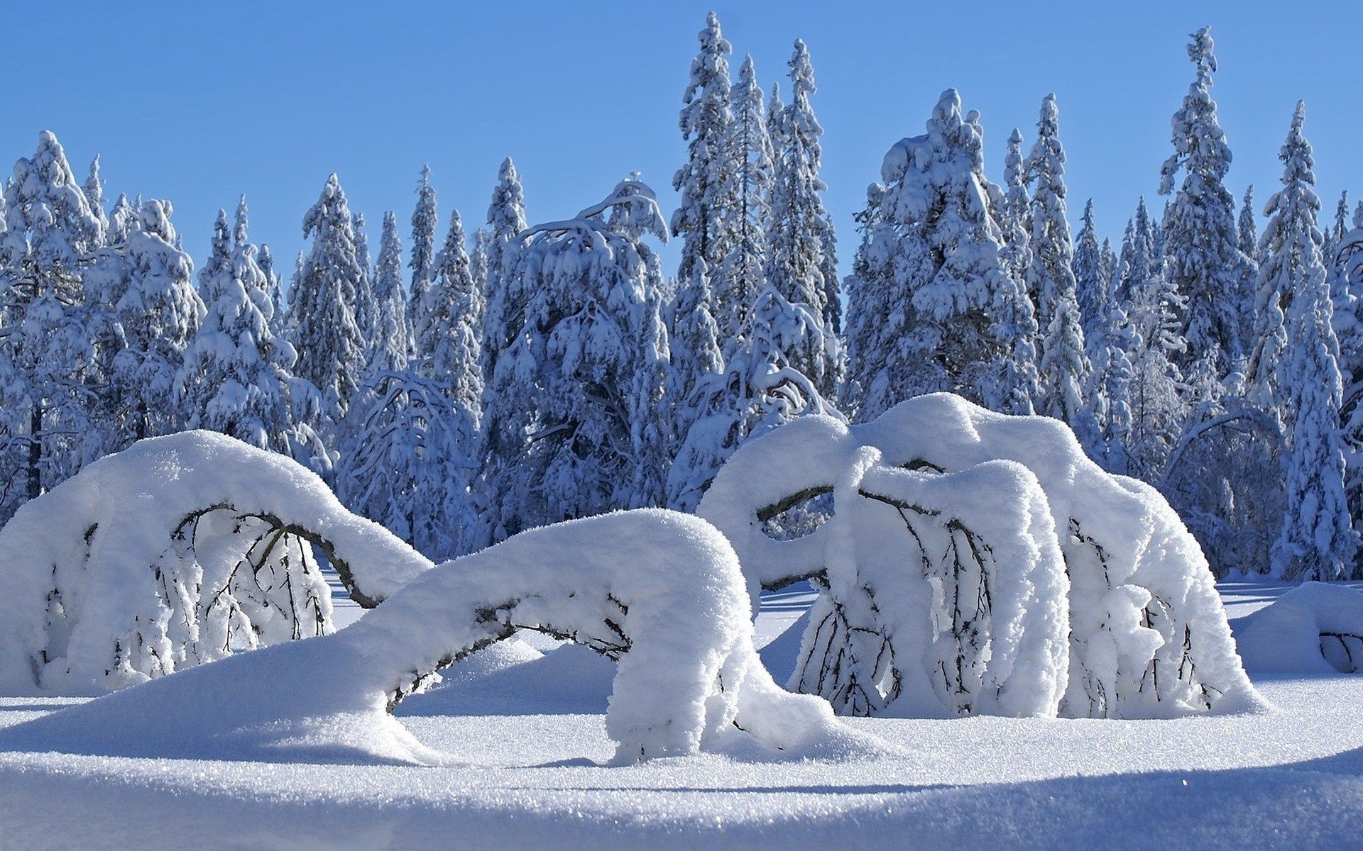 Árvores congeladas na neve branca