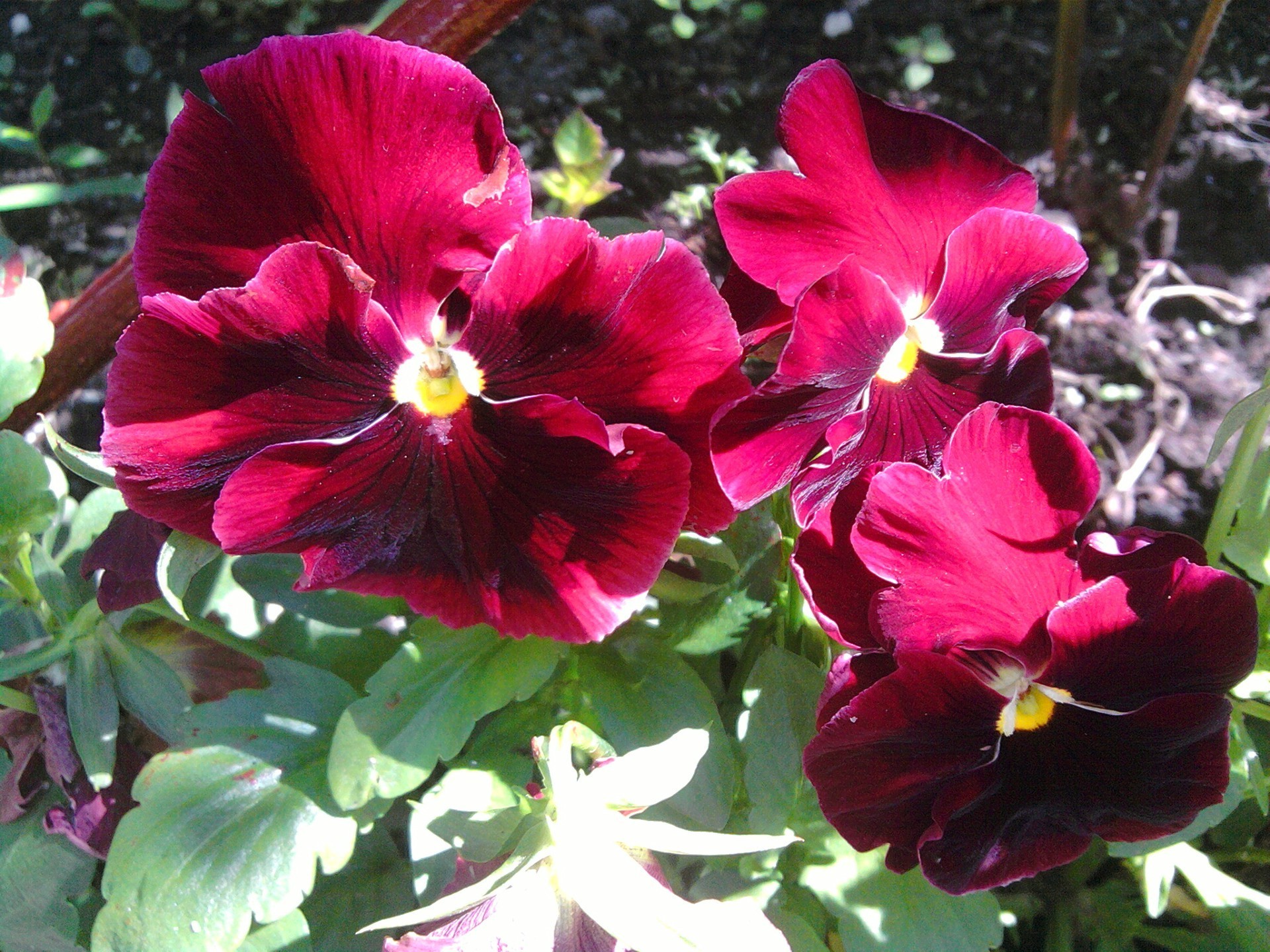 Canteiro de flores com flores amor-perfeito Borgonha