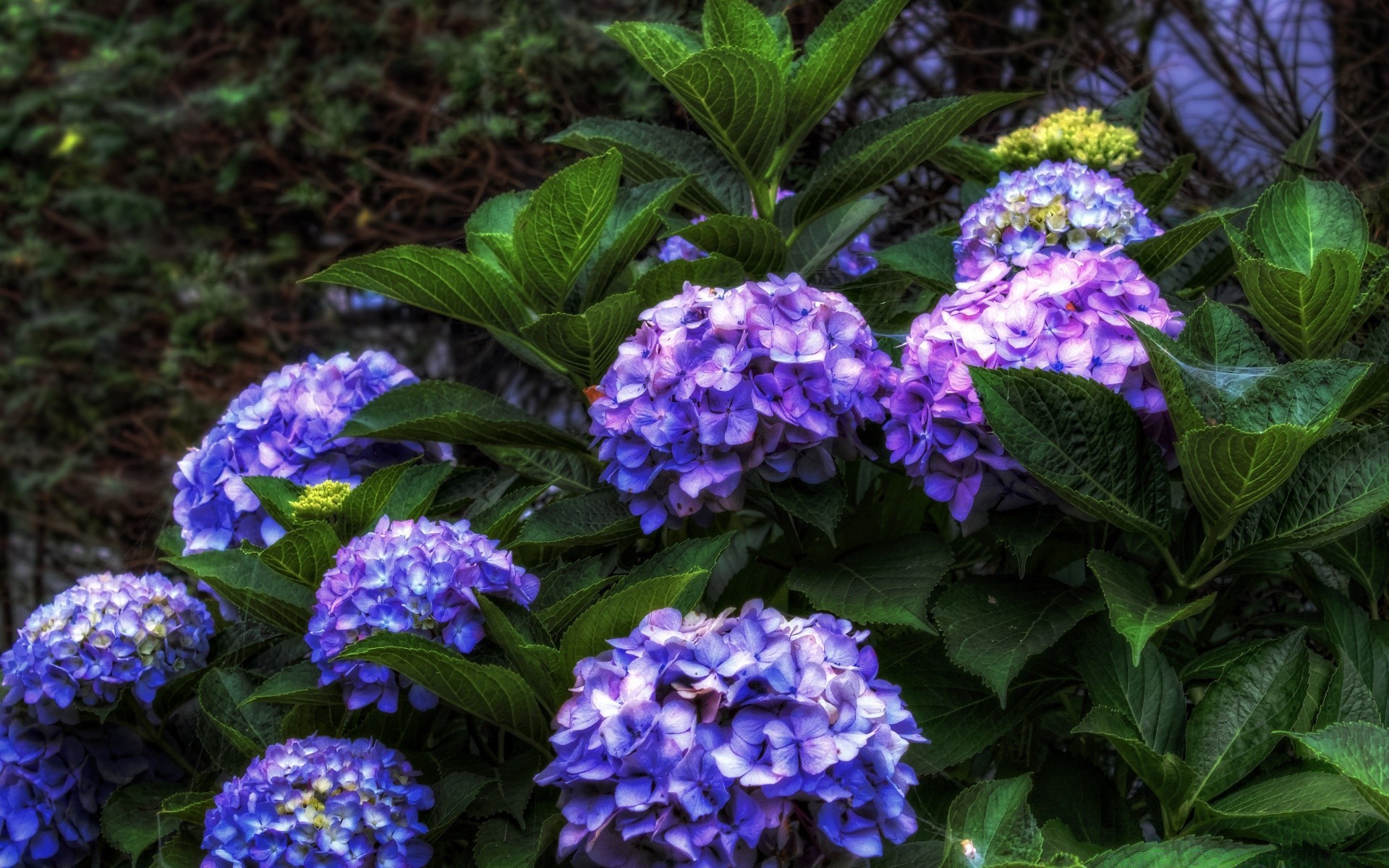 Lindas flores roxas na folhagem