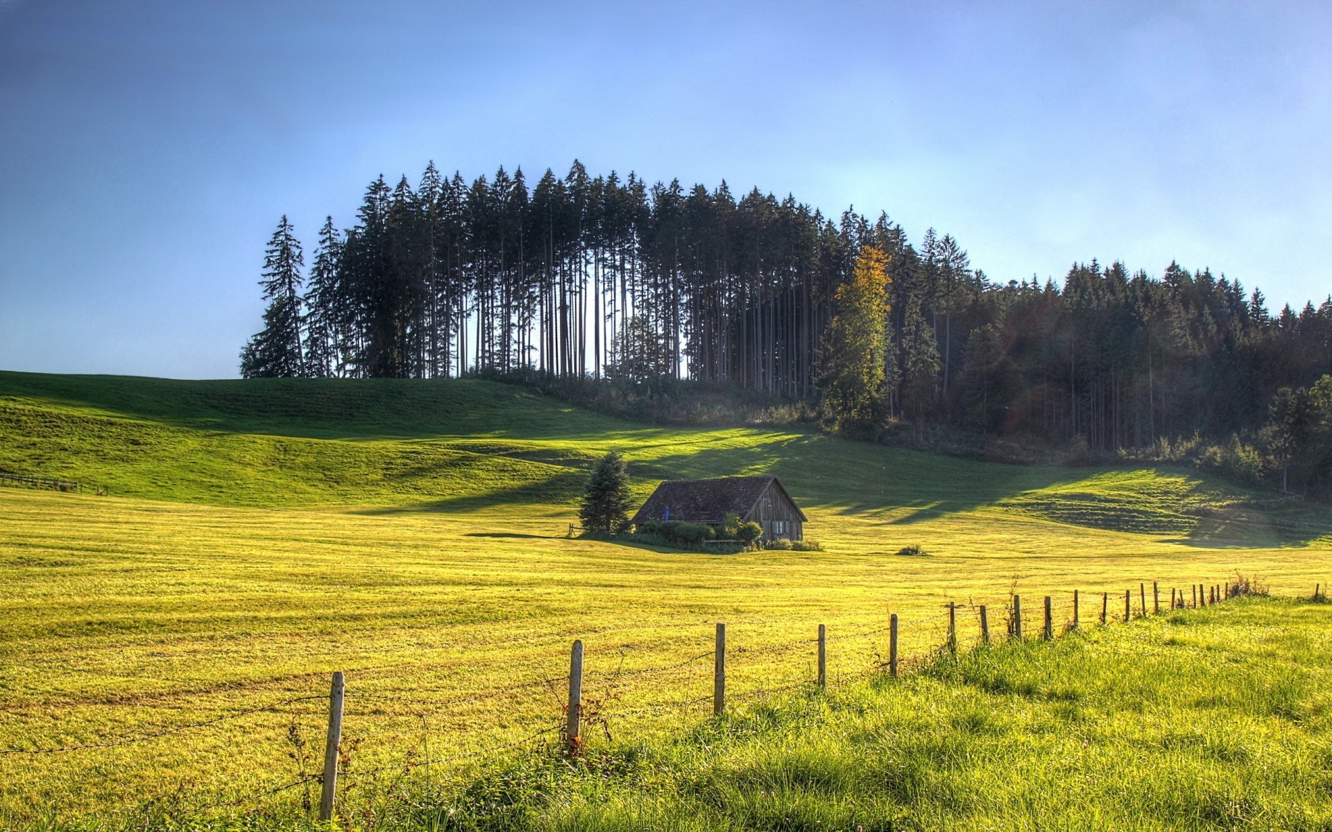 Atrás do lago há uma floresta e atrás da floresta há uma montanha