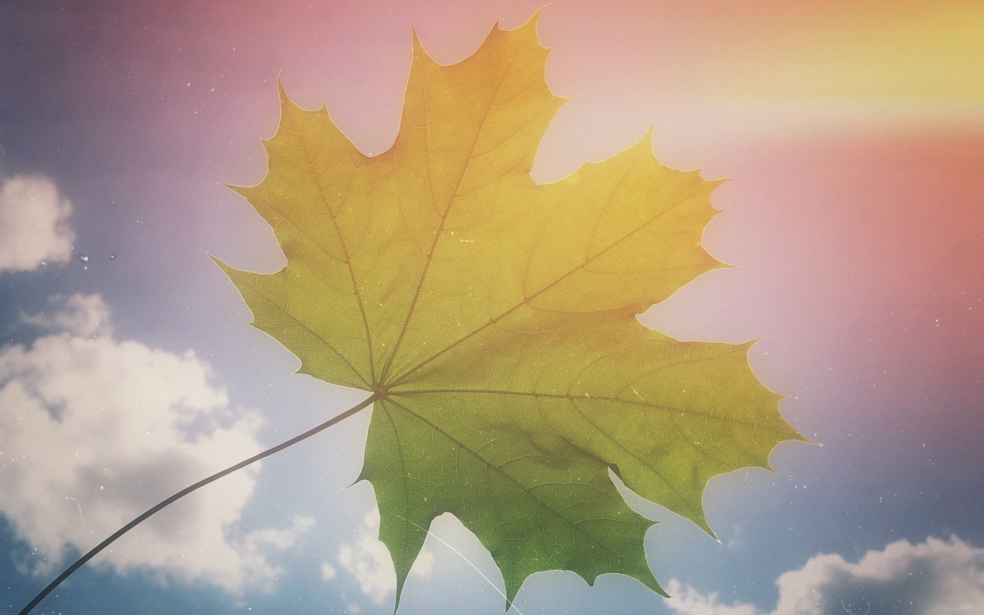 Folha de bordo amarela no fundo do céu azul