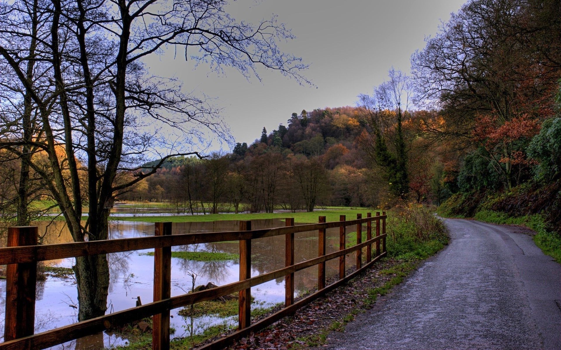 Árvores de outono com folhas na ponte