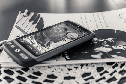 Foto em preto e branco. Foto do telefone