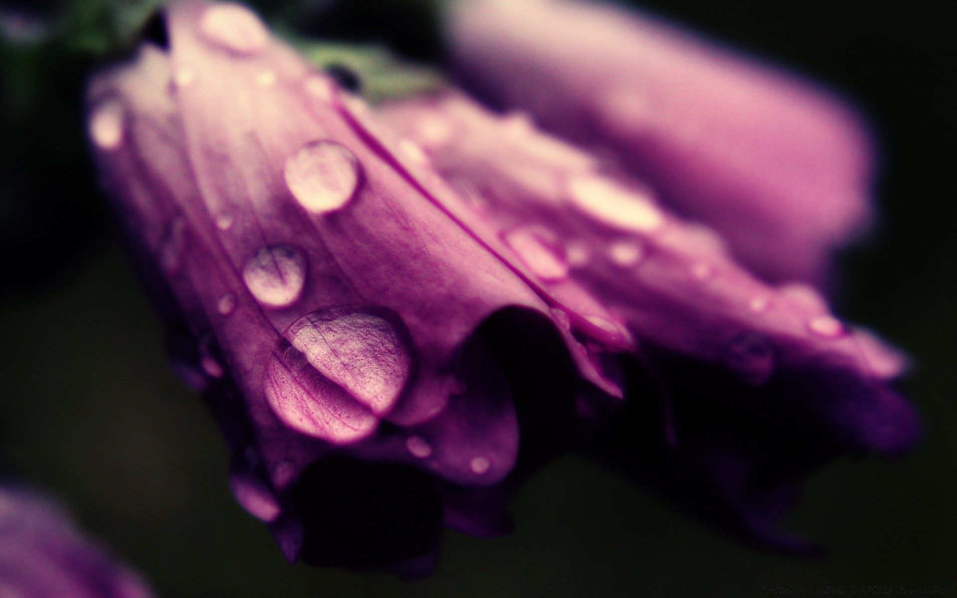 Fotografia macro. Orvalho. Gotas caindo da grama