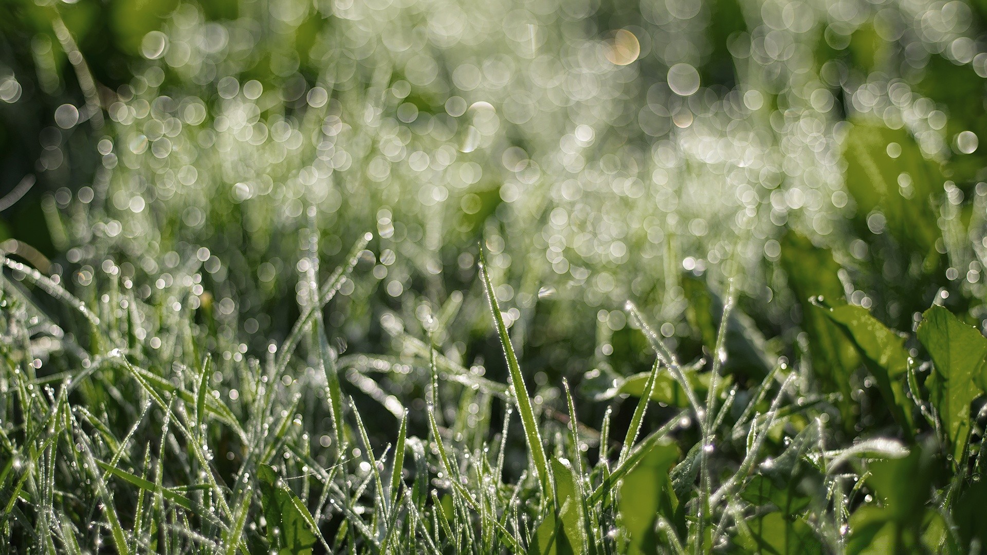 Orvalho da manhã e grama verde