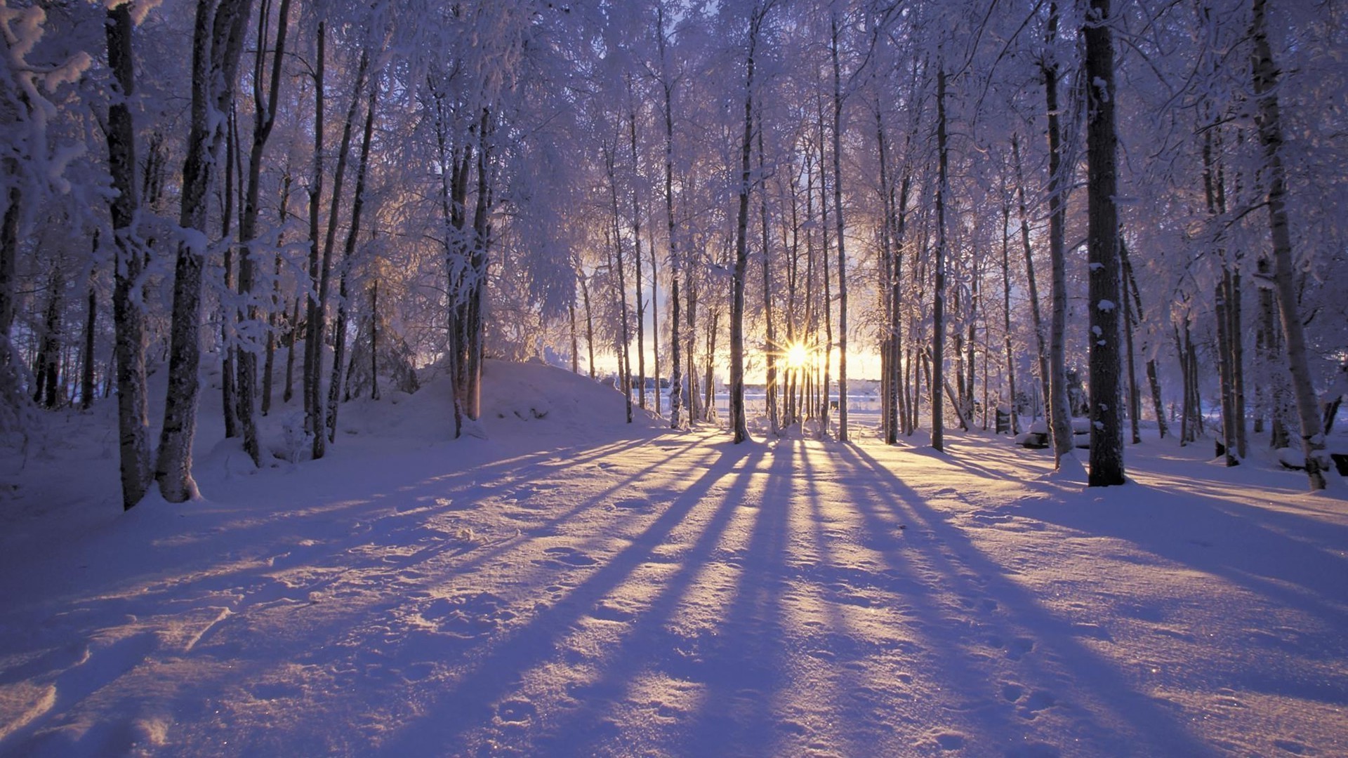 Árvores brancas cobertas de neve contra o céu noturnoÁrvores brancas cobertas de neve contra o céu noturno