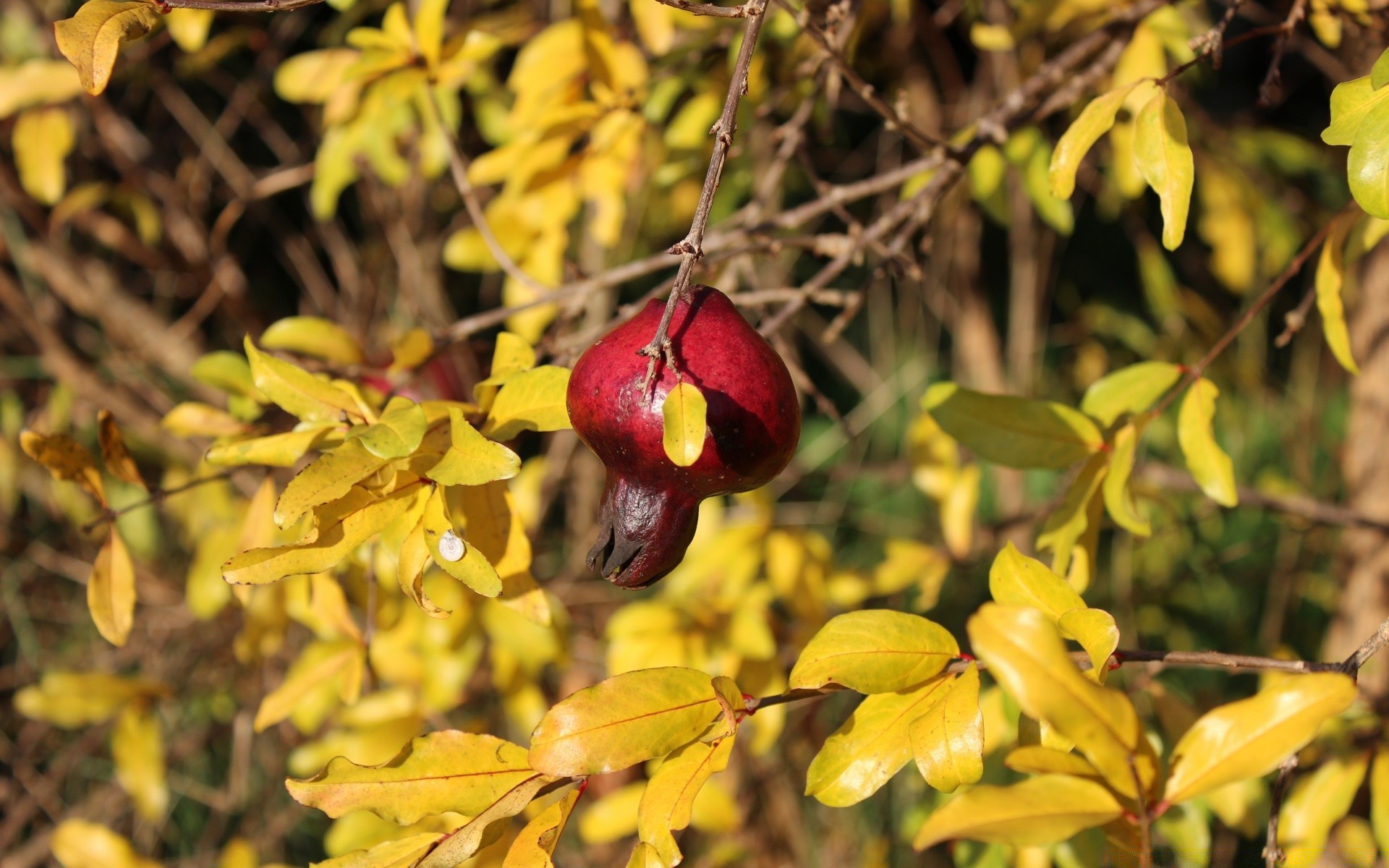Rosa mosqueta escarlate no fundo de folhas amarelas