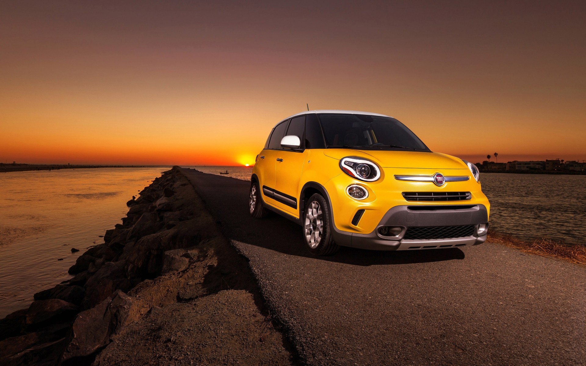 Carro no fundo do pôr do sol amarelo