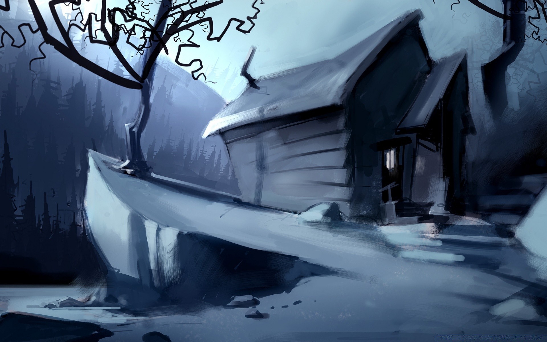 Casa de fantasia em uma noite de neve