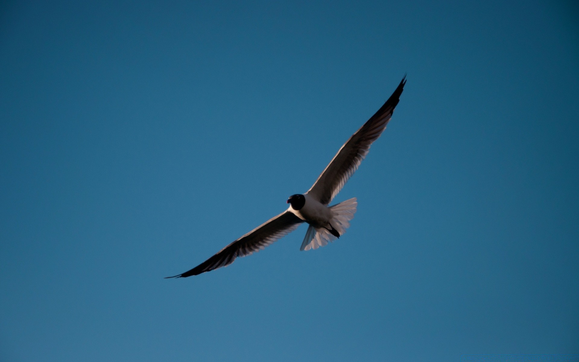 Sobre as nuvens e uma gaivota voando ao pôr do sol