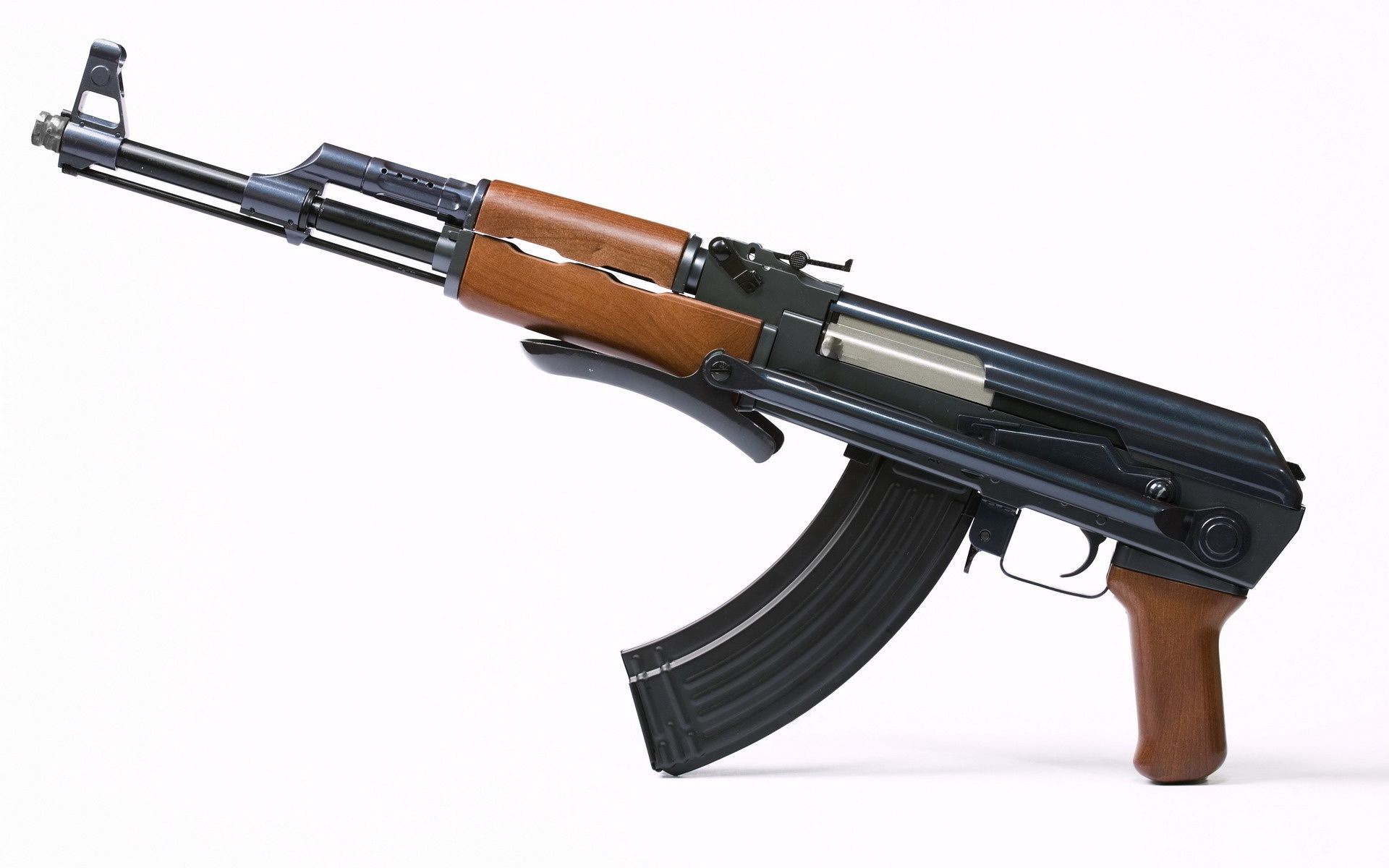 Pistola, Rifle de assalto, Capacete Com Dispositivo de visão noturna, deitado em um colete à prova de balas