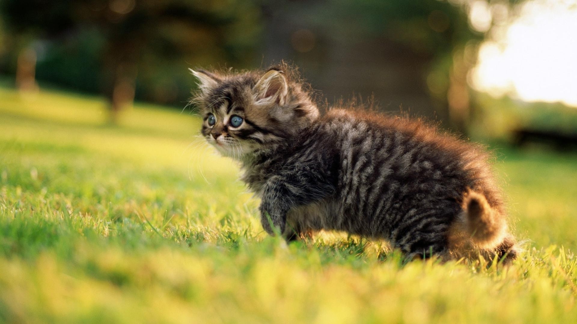 Gatinho pequeno na grama verde