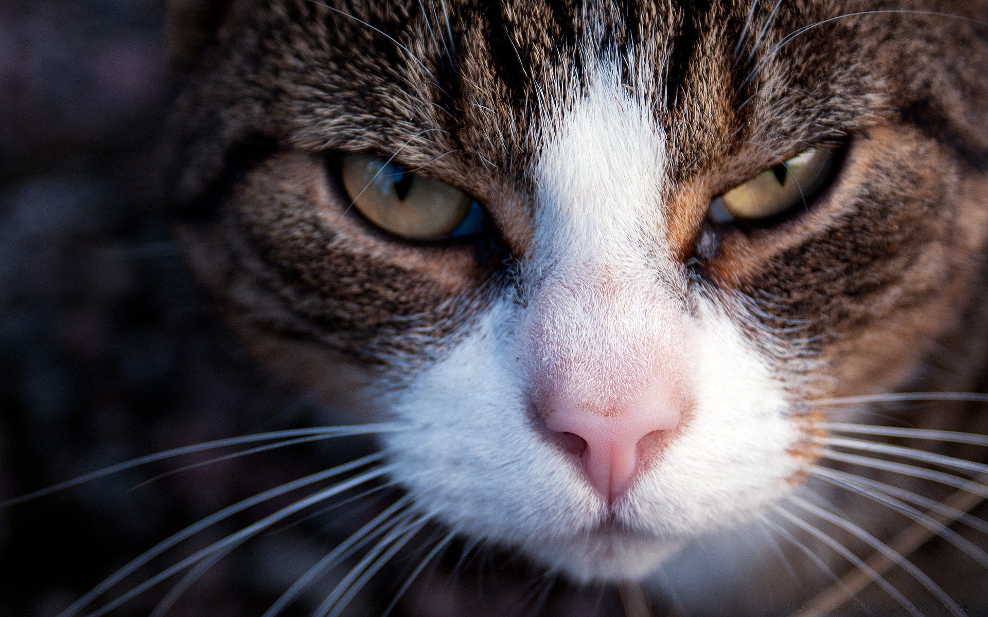Gatinho branco bonito com manchas vermelhas deitou-se para descansar