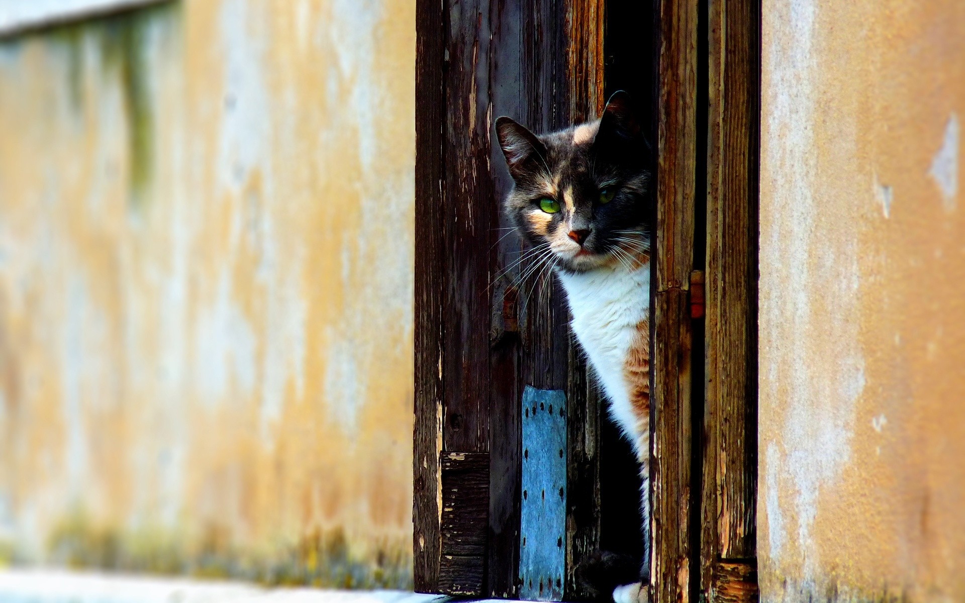 Gato espreita pela porta