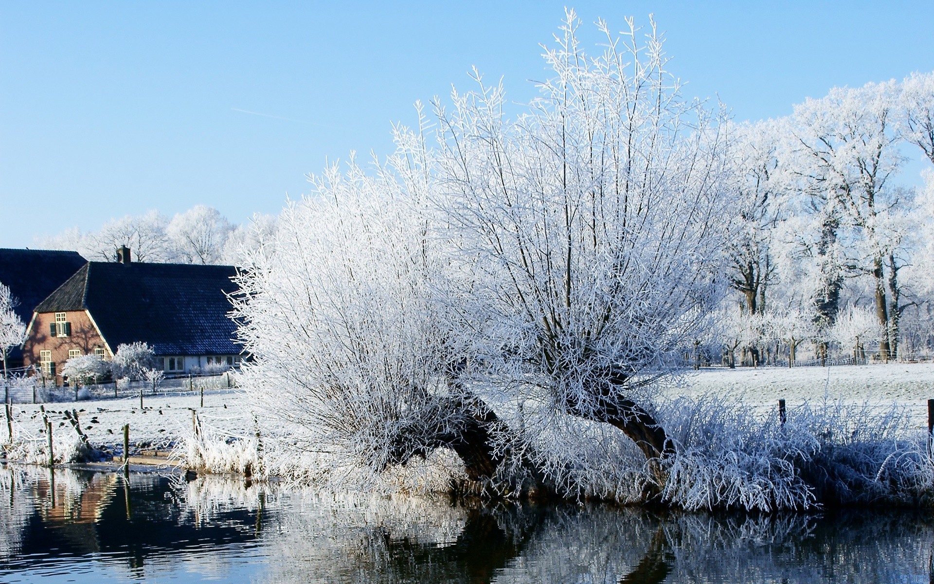 Árvore congelada perto do rio