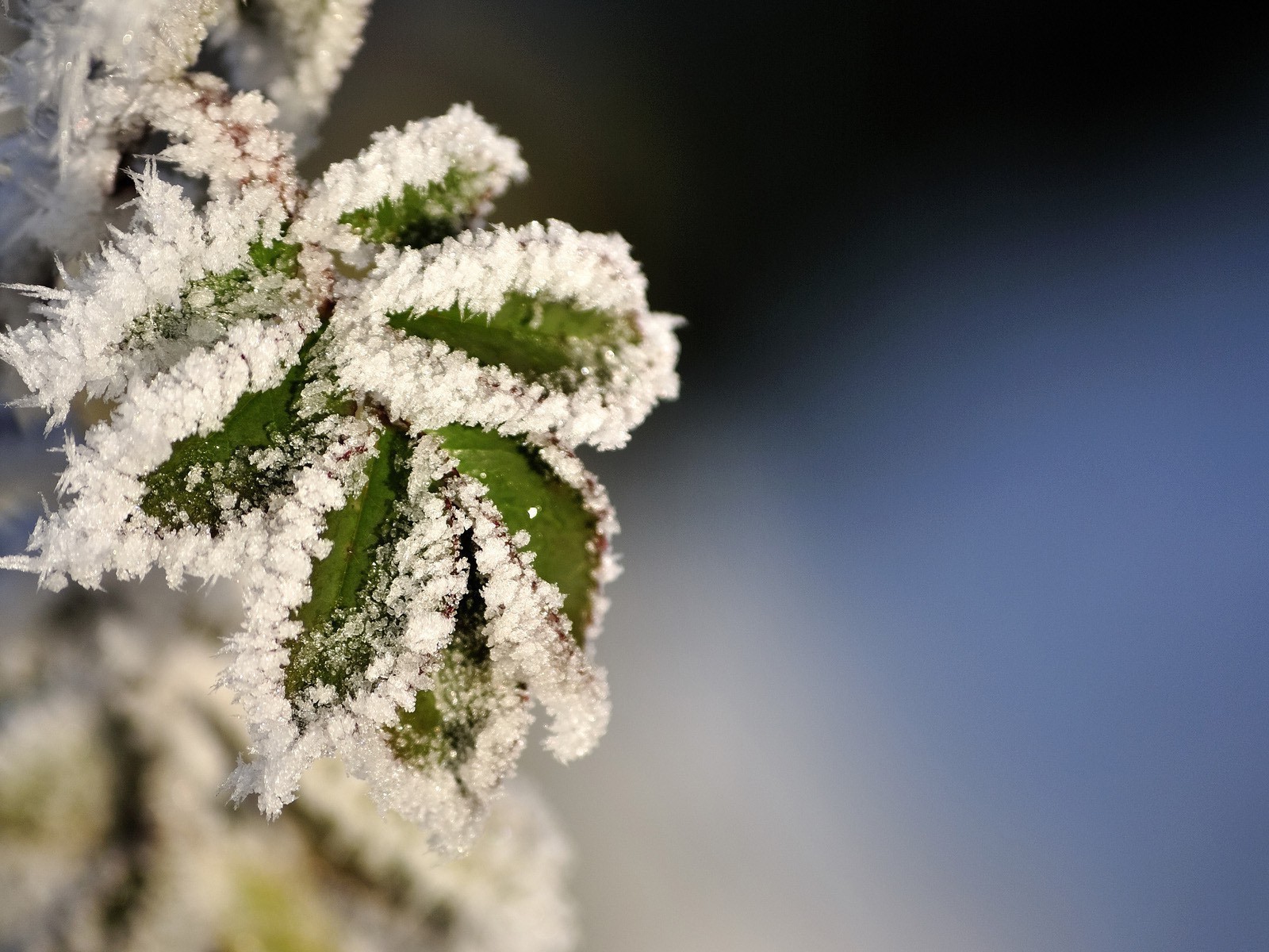 Folhas verdes em cristais de gelo