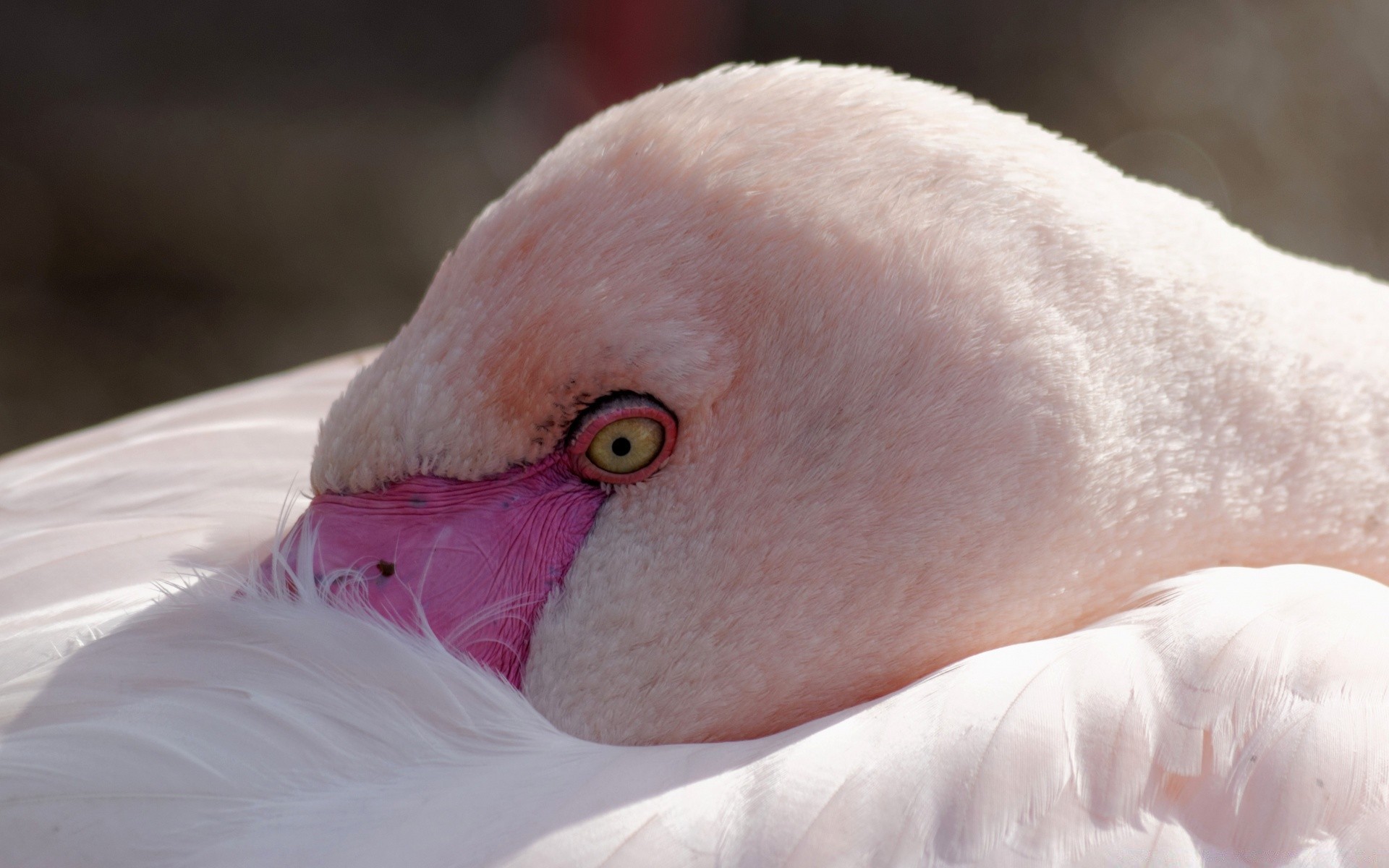 Flamingo cor-de-rosa com o bico nas penas