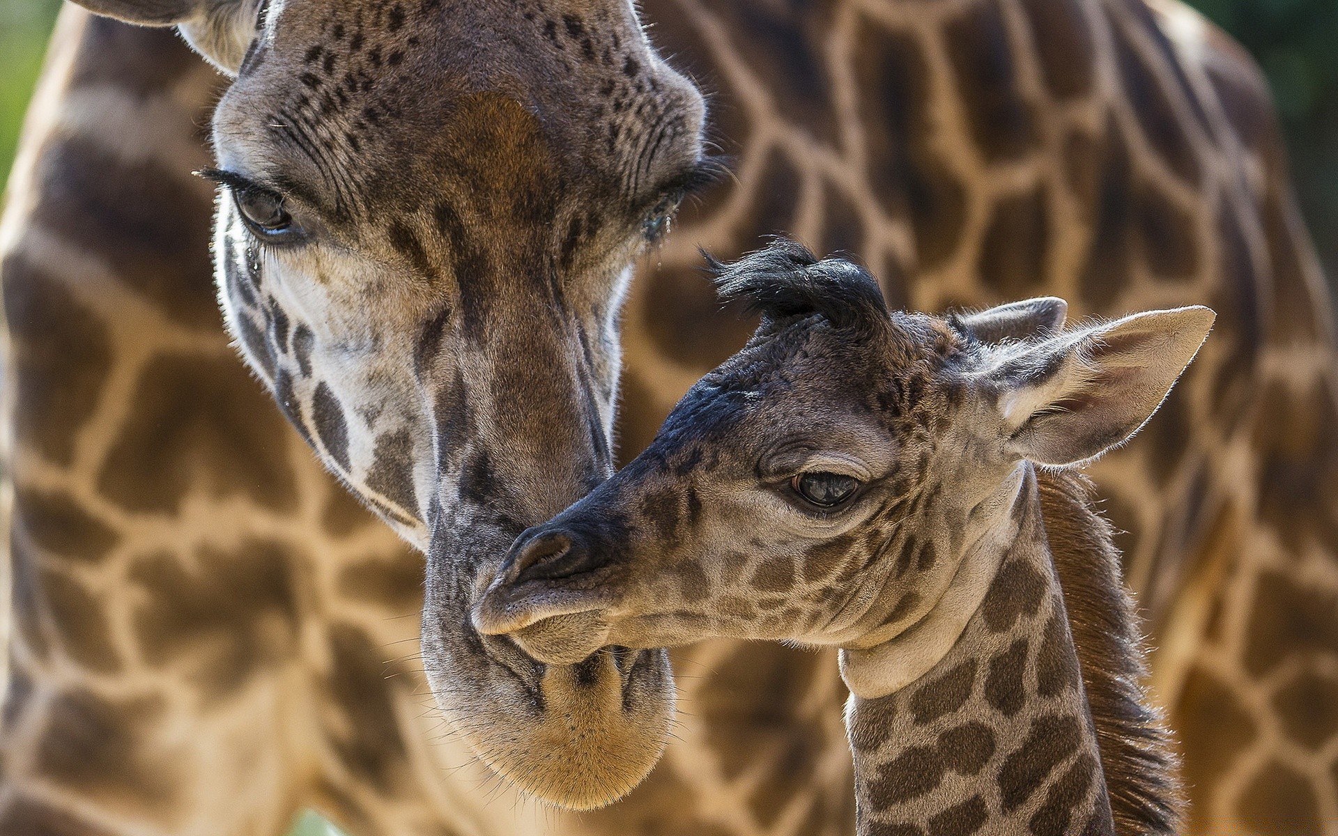 Duas girafas comendo folhagem de uma árvore com uma mortalha