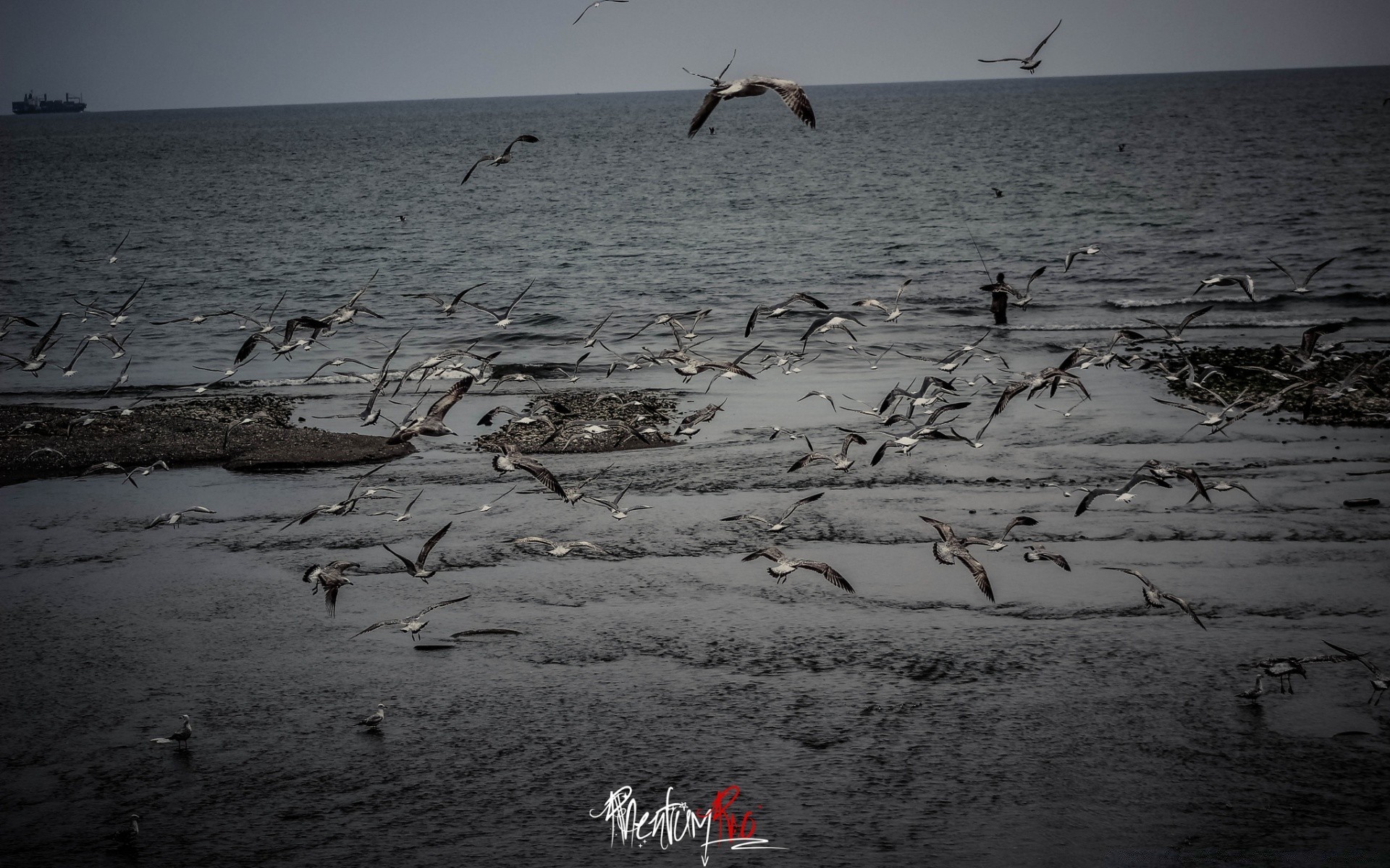 Pescadores na costa rochosa do mar sob o sol do pôr do sol