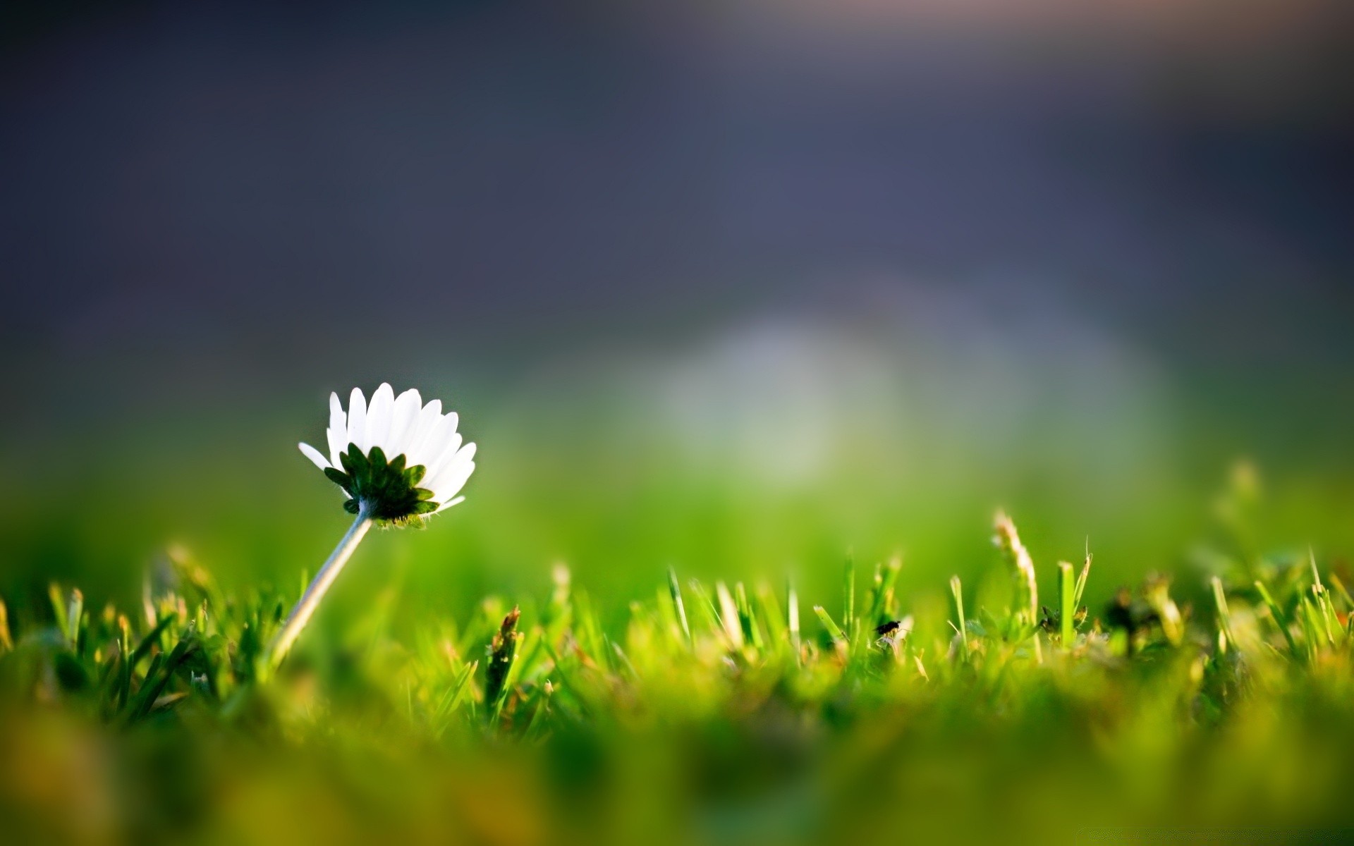 Foto de uma flor virada para o sol na grama