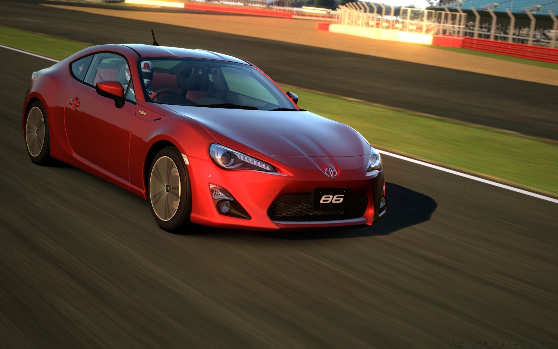 Carro antigo estacionado em frente a um café no jogo de computador gran turismo