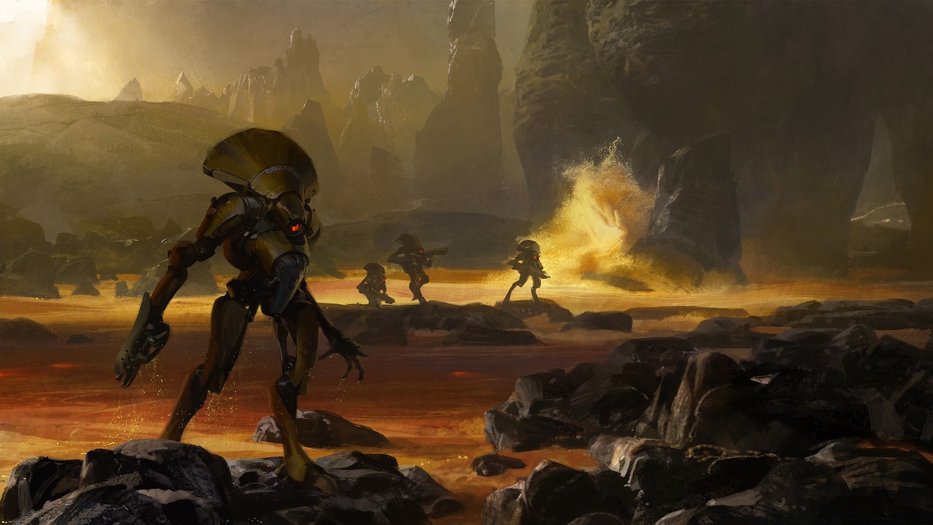 Ilustração de um personagem com uma arma e um plano de fundo desenhado