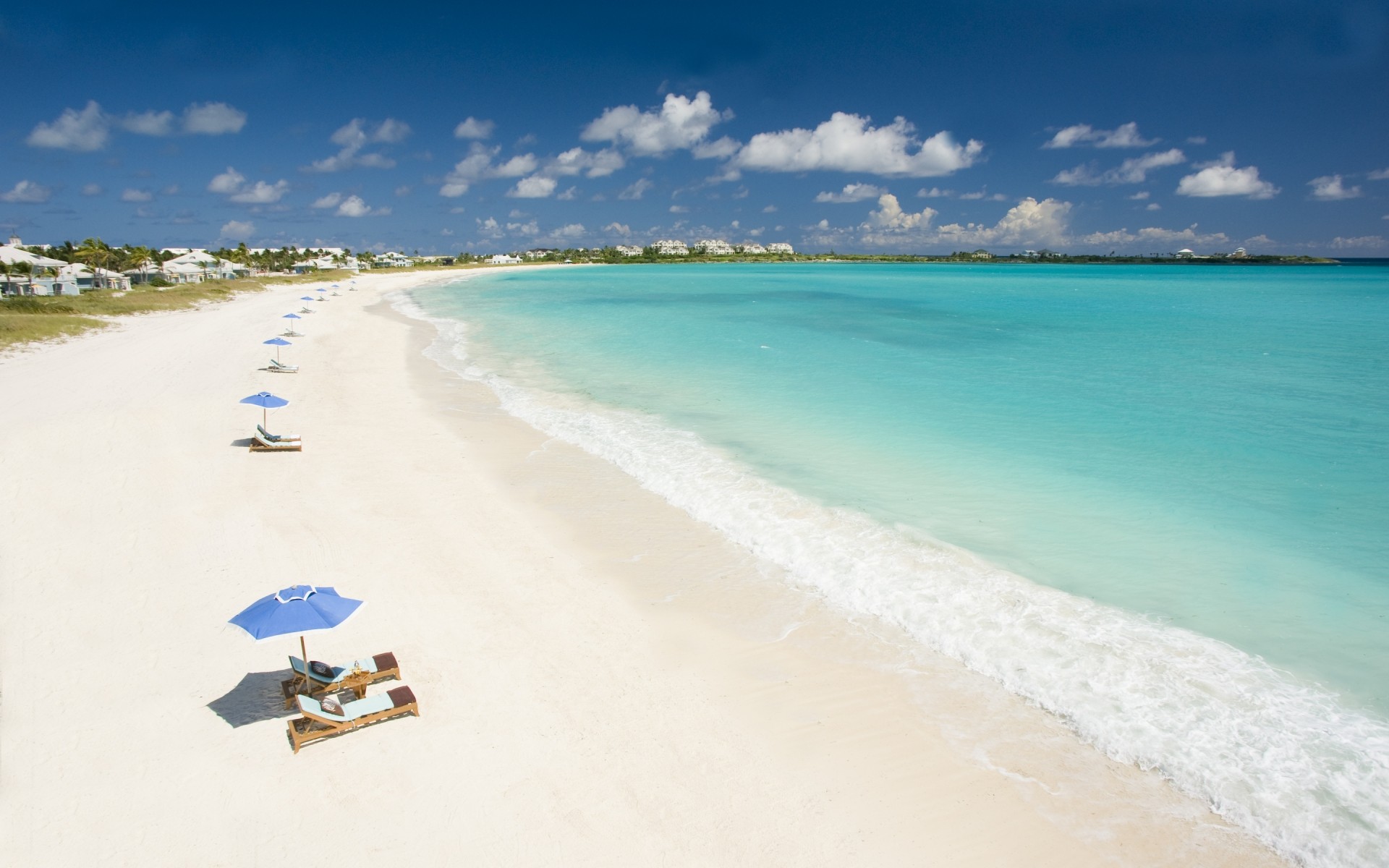 Espreguiçadeiras e guarda-sóis à beira-mar