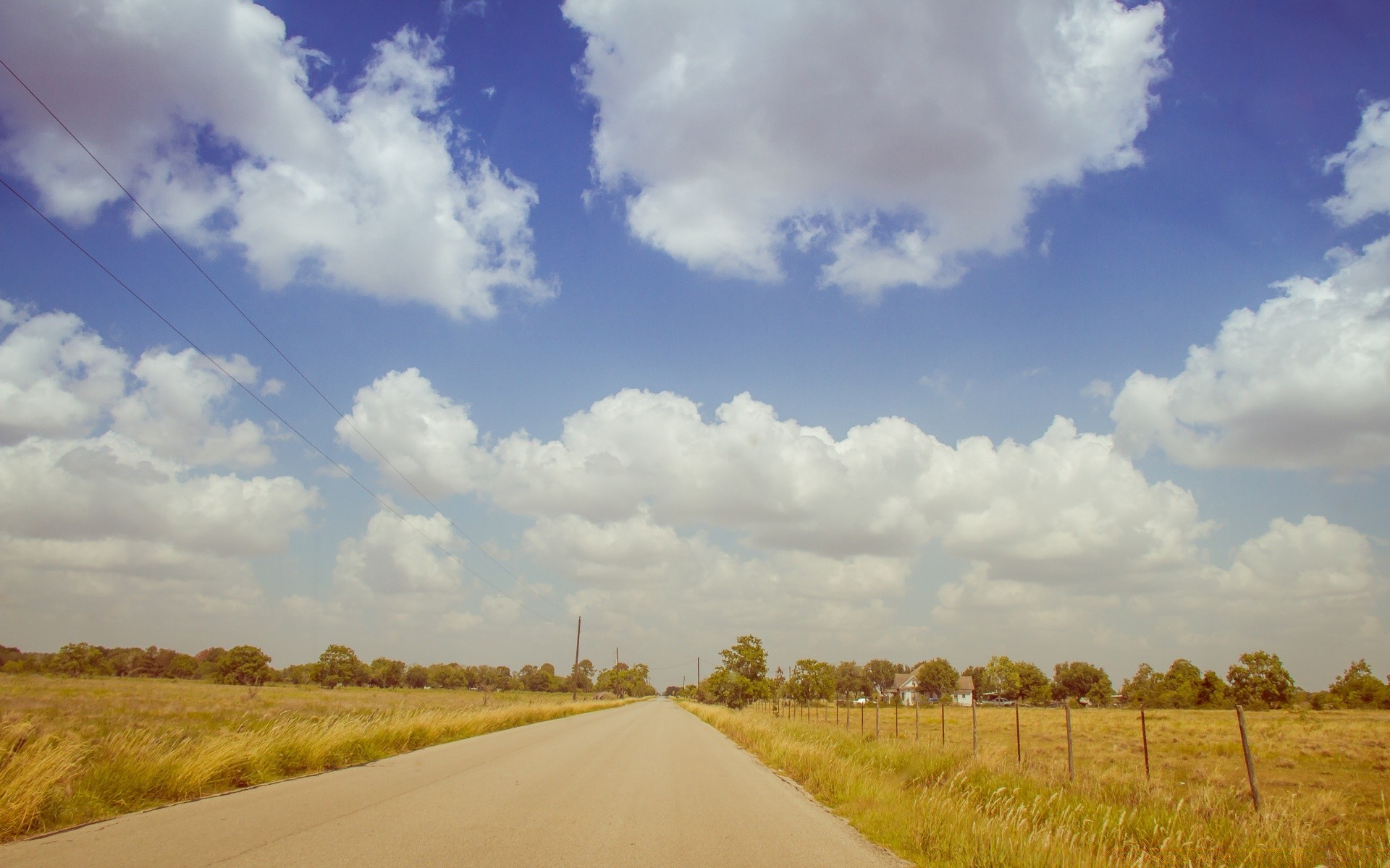 Grama verde, a natureza dos campos rurais e o céu da cor Azul