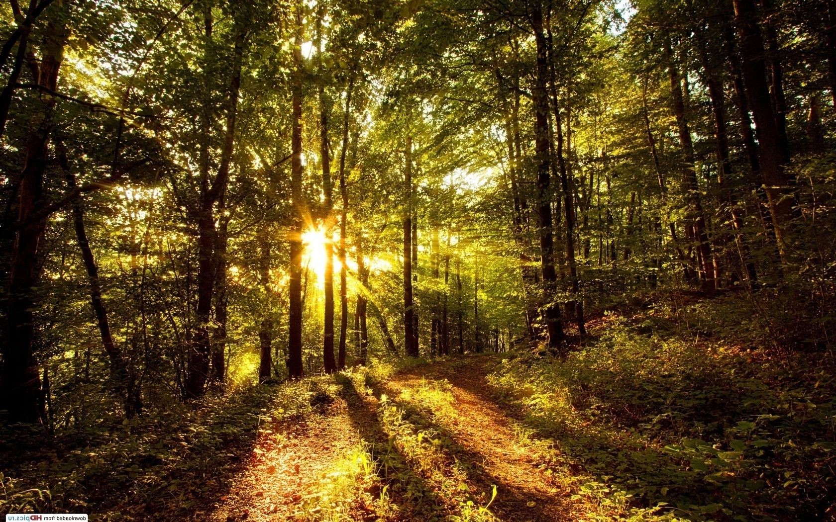 A luz brilha através das árvores