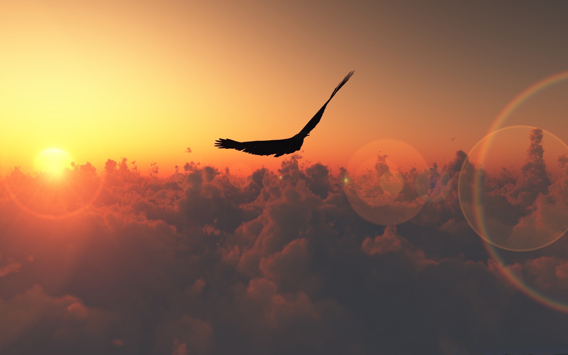 Voando sobre a floresta. O beijo do sol