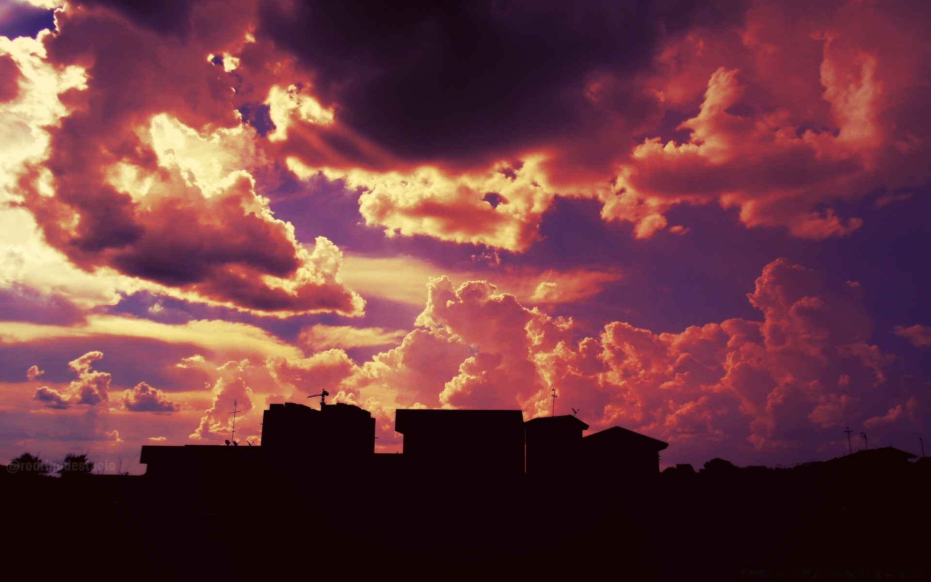 Céu nuvens silhuetas casas beleza