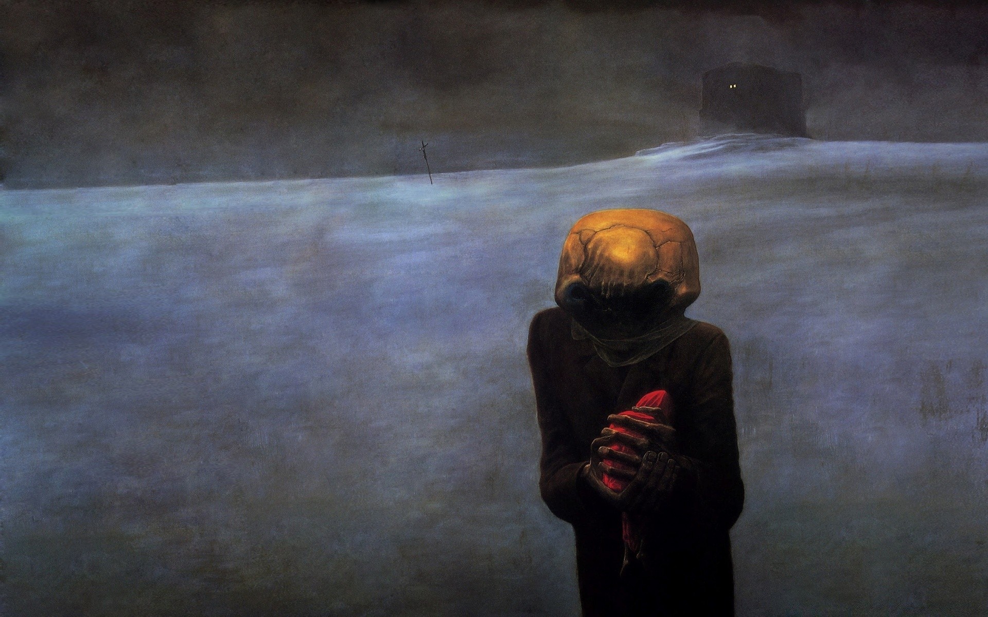 Um alienígena com uma arma no nevoeiro