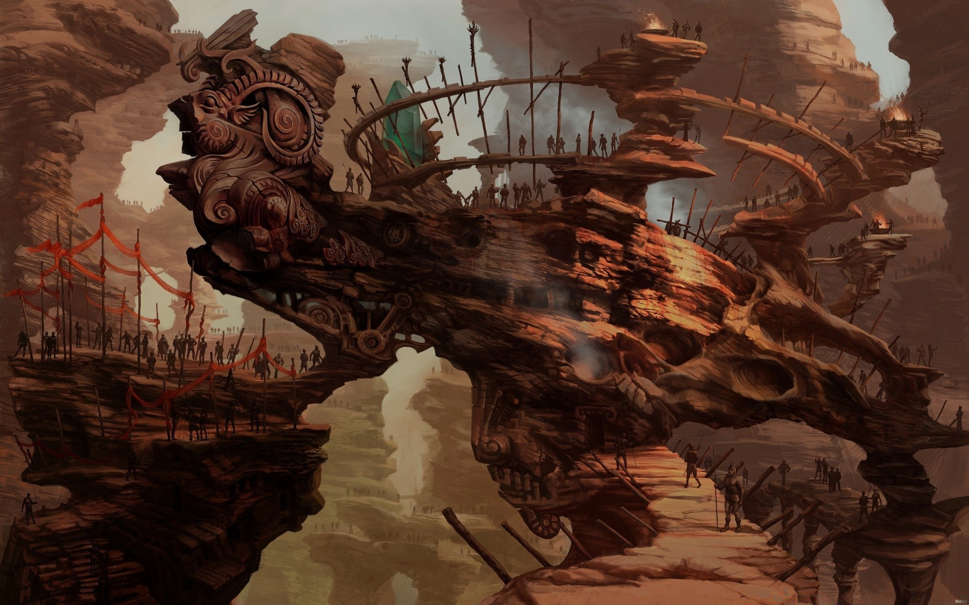 Bela estrutura arquitetônica no fundo de uma cachoeira