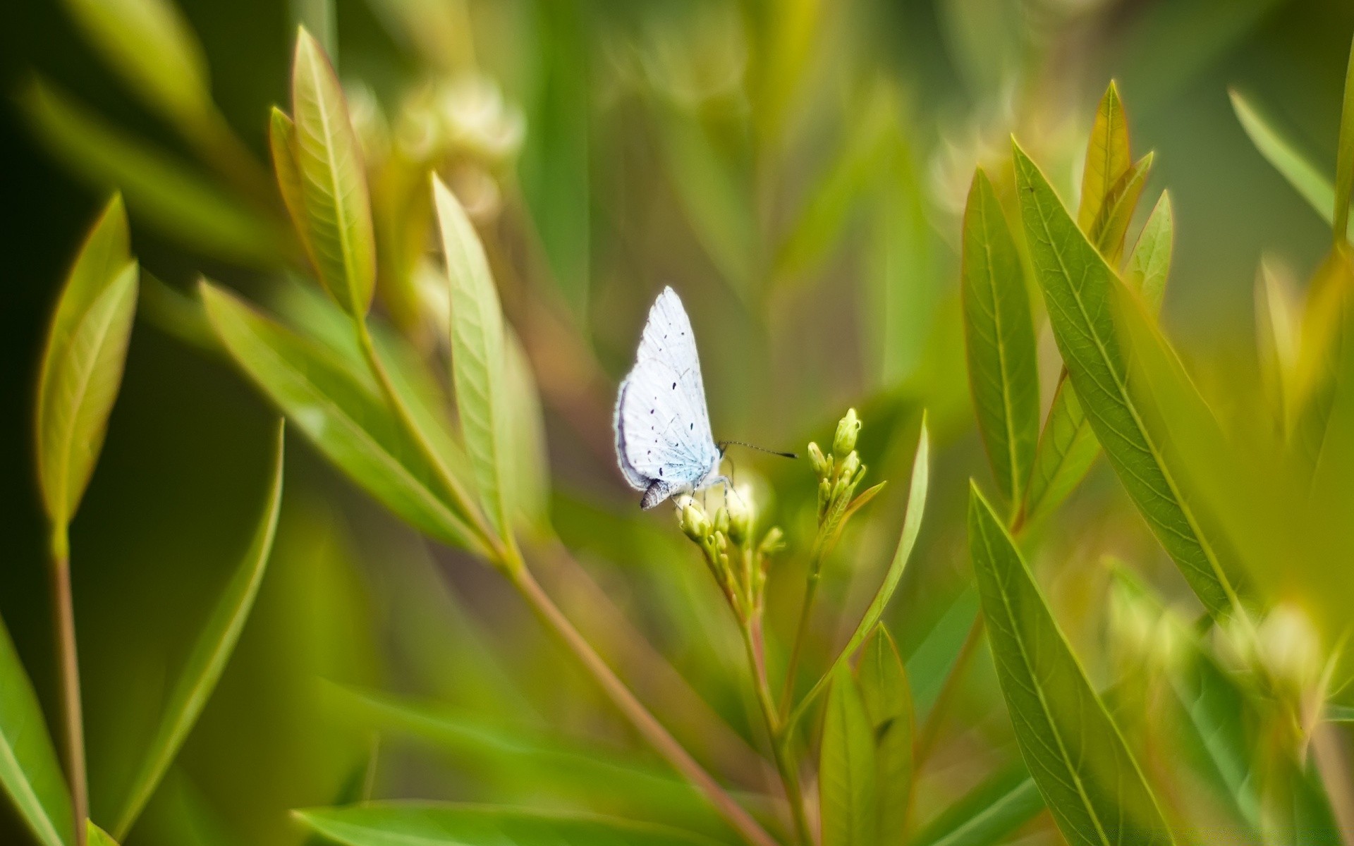 Borboleta roxa em folha verde