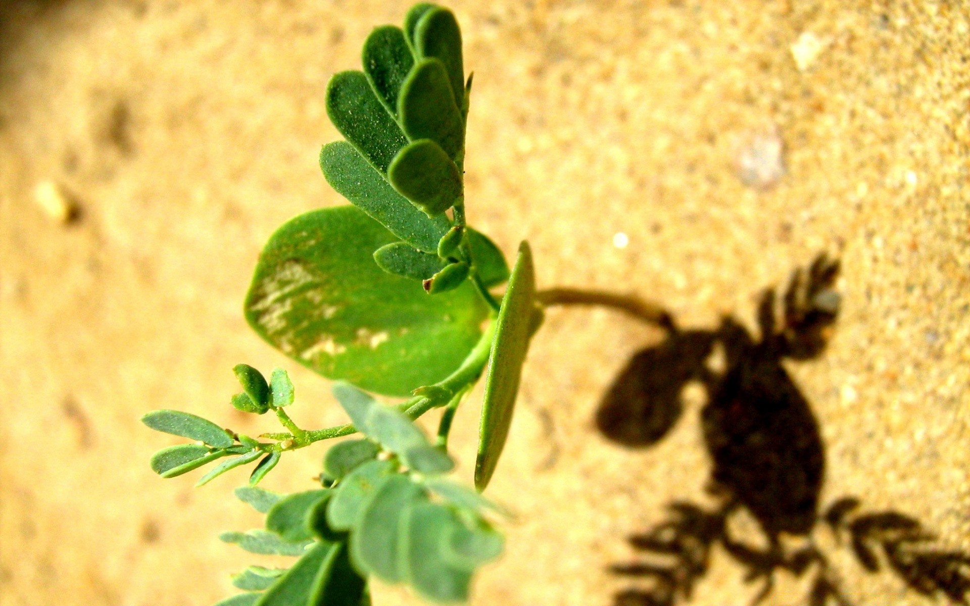 Um broto verde atravessa a areia