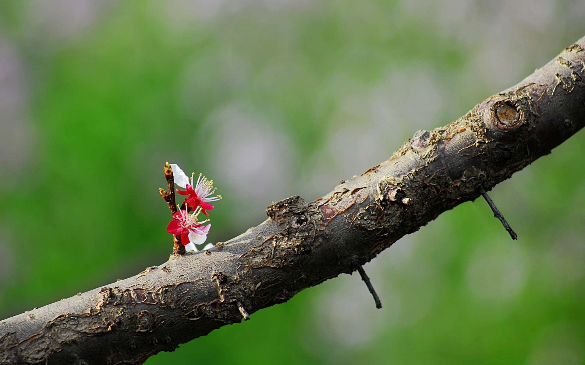 Flor germinada em um galho de árvore