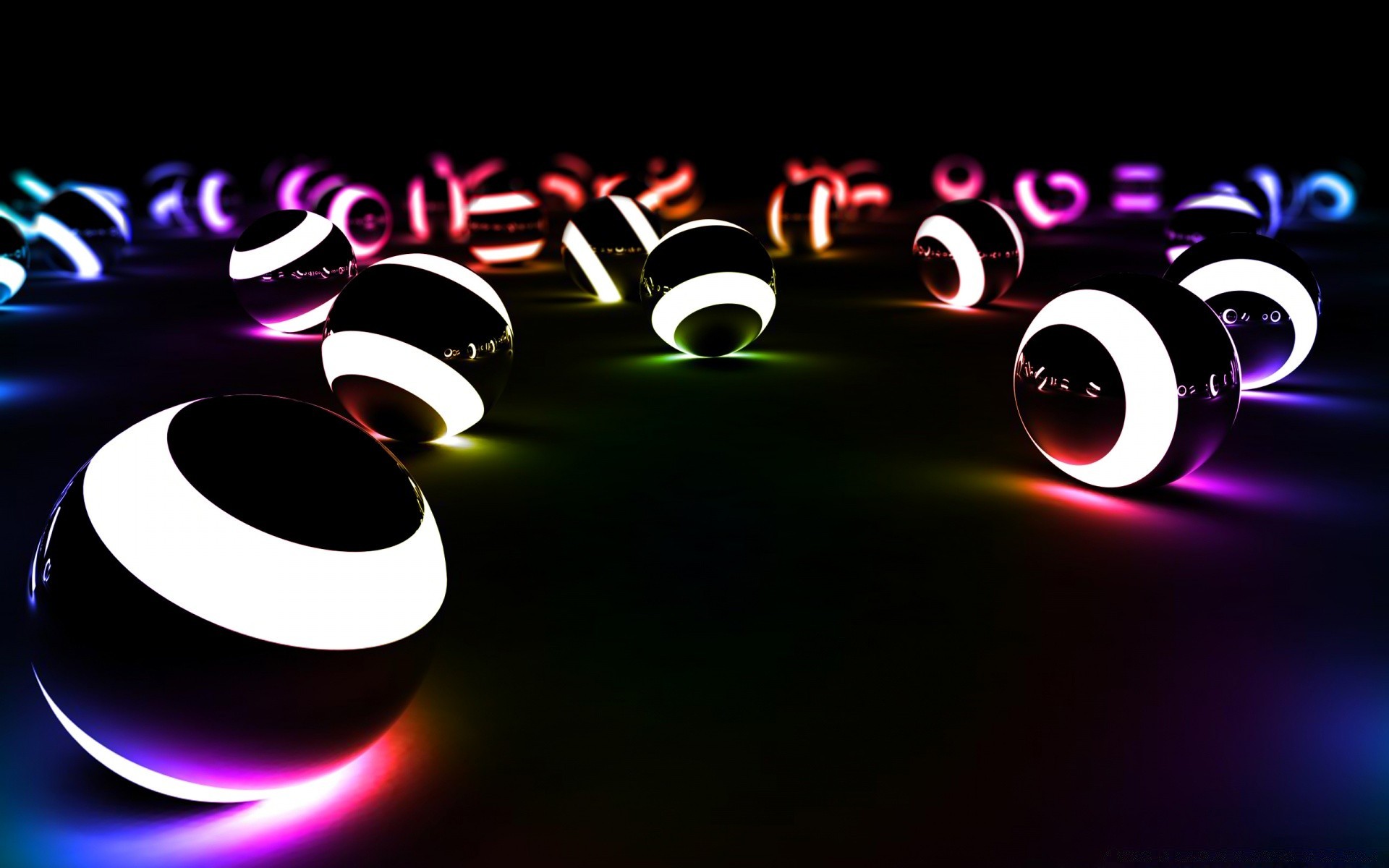 Bolas brilhantes em fundo preto
