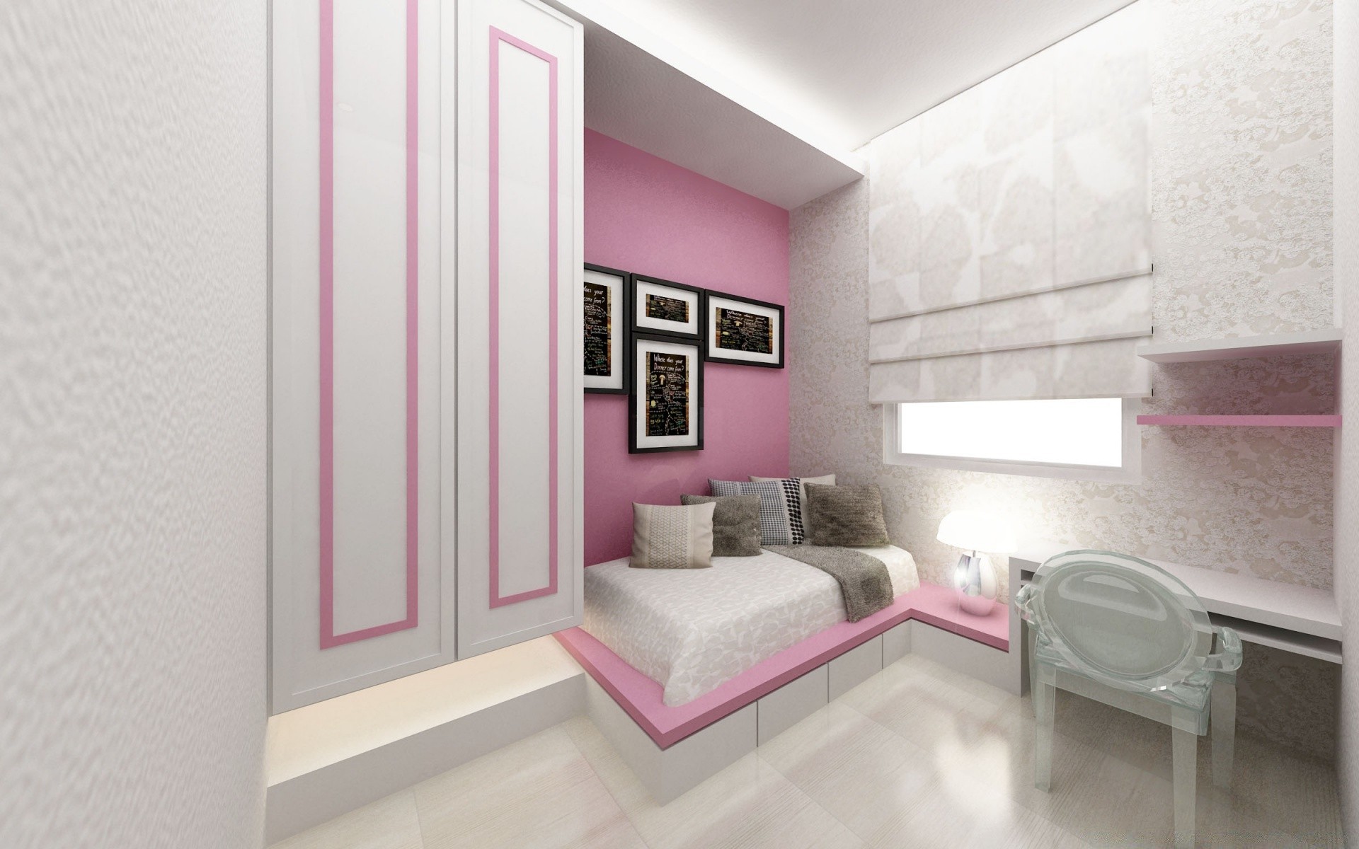 Sofá vermelho no apartamento e duas lâmpadas de assoalho