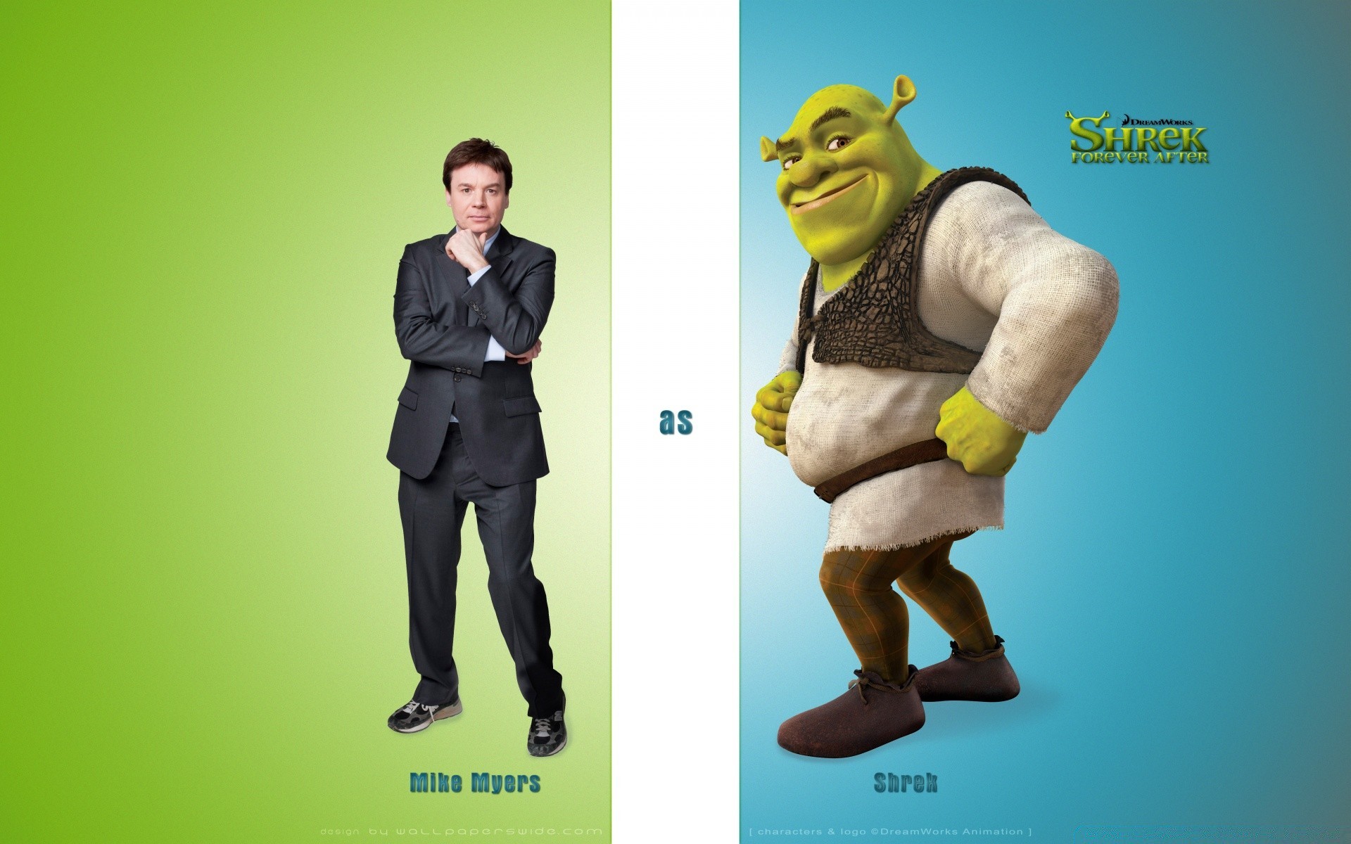 O ator é retratado ao lado de seu personagem de desenho animado - Shrek