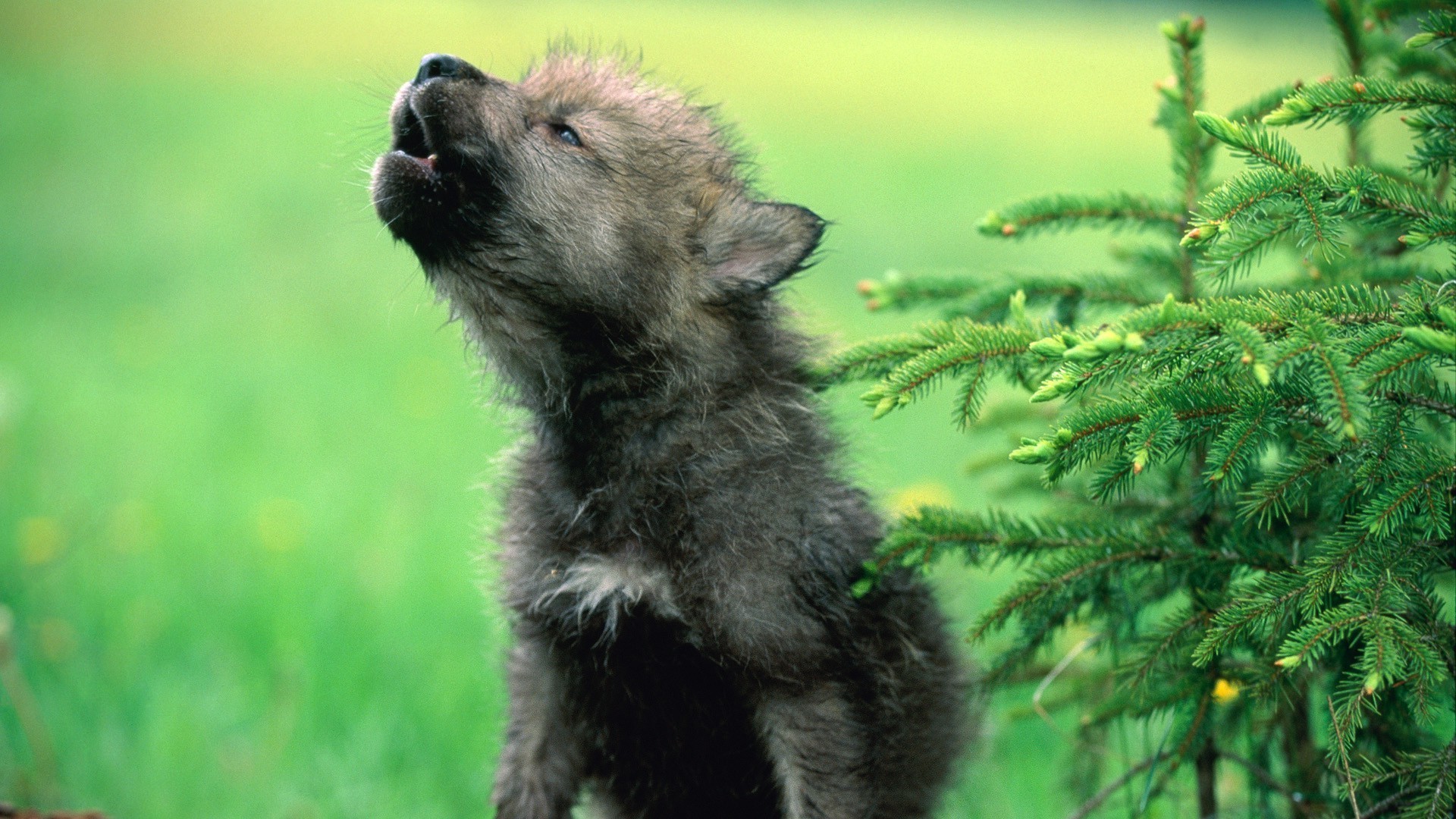 Jovem lobo uivando para a lua