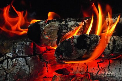 Carvão em uma fogueira que se transforma em fogo