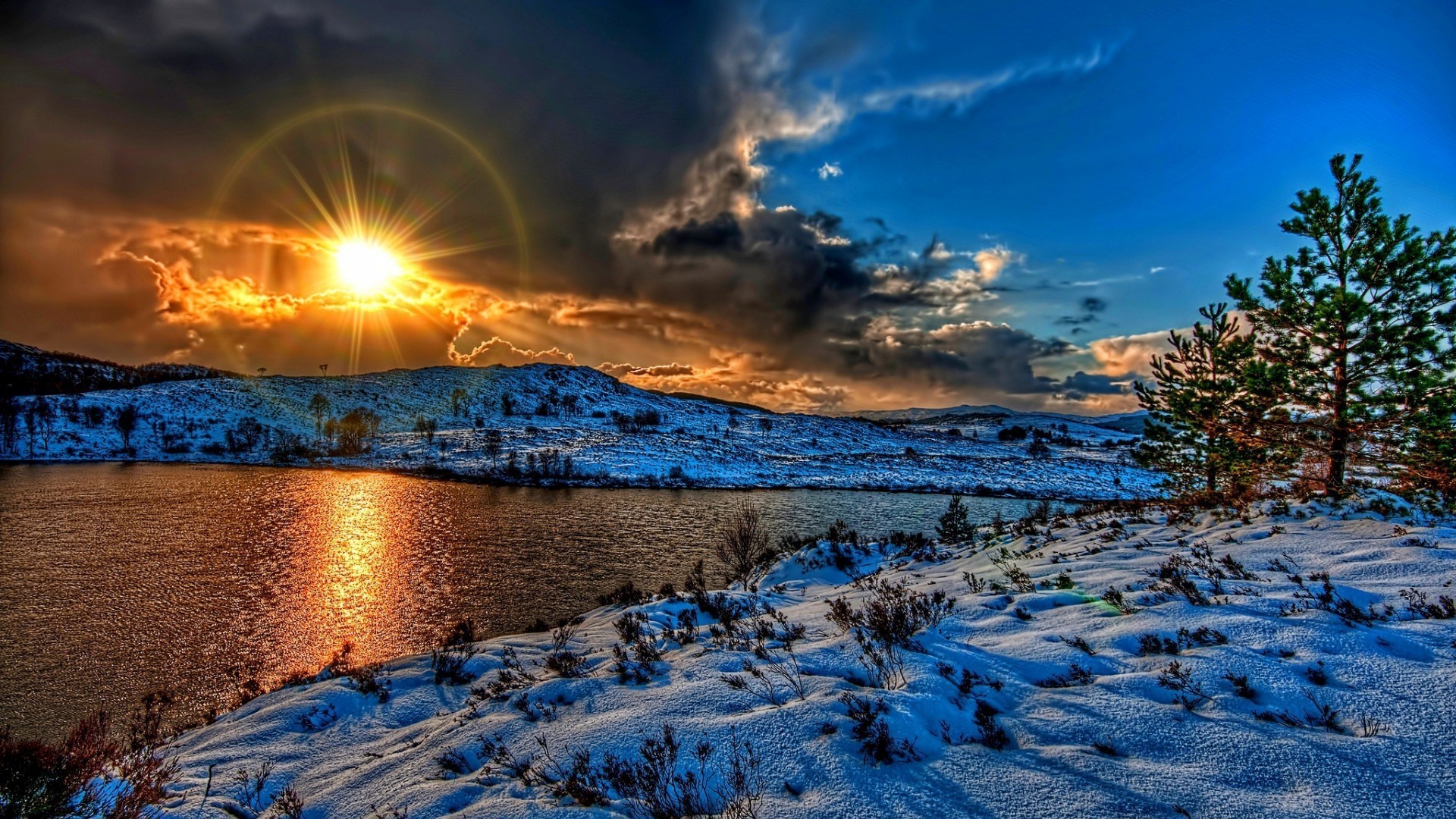 Paisagem deslumbrante lago ao pôr do sol em torno do penhasco