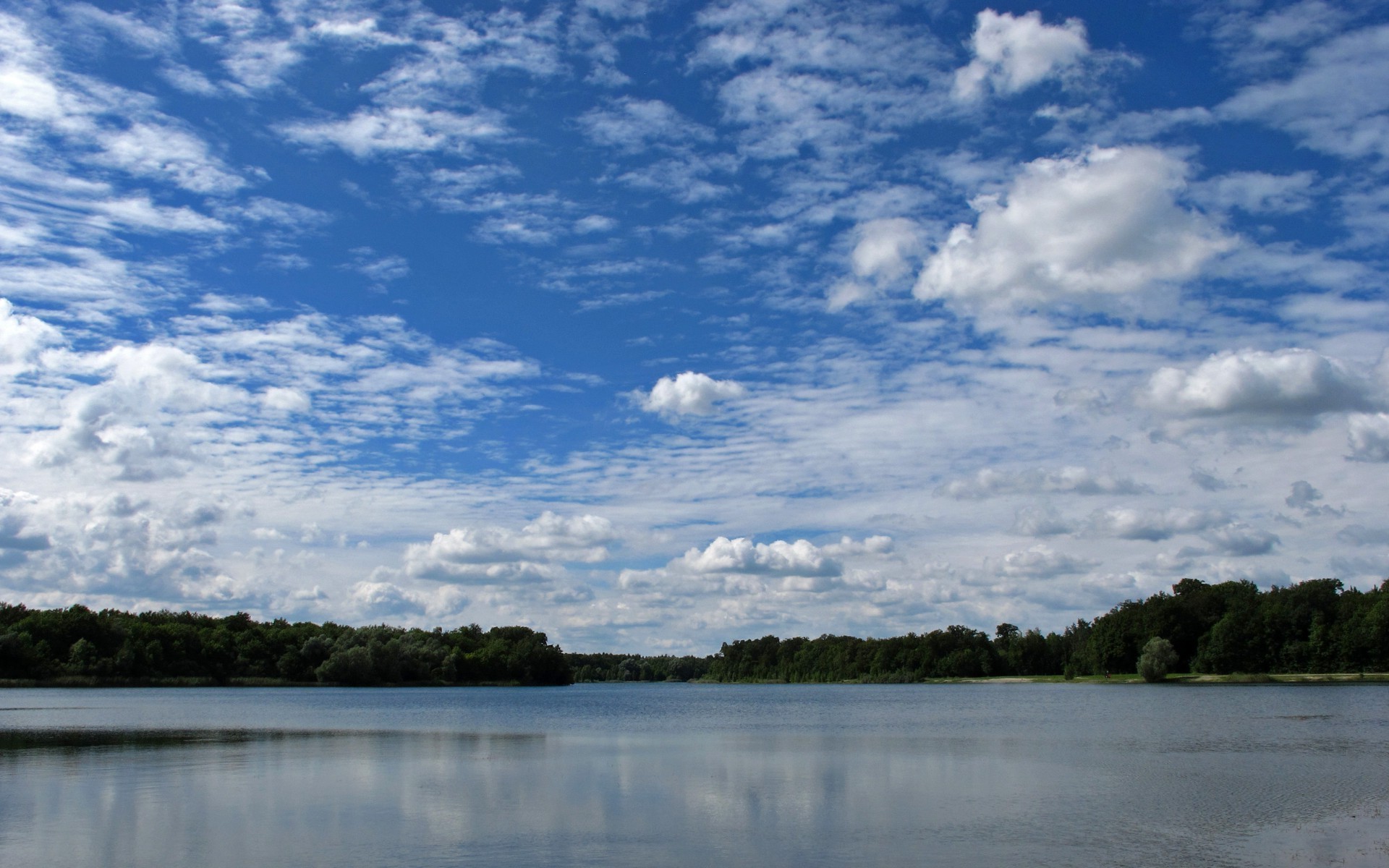 Lago nas montanhas ondulações rasas correndo sobre a água após as nuvens pesadas que fogem