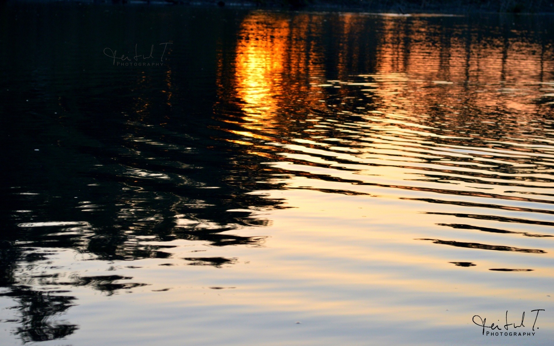 Reflexão da luz solar durante o pôr do sol no lago