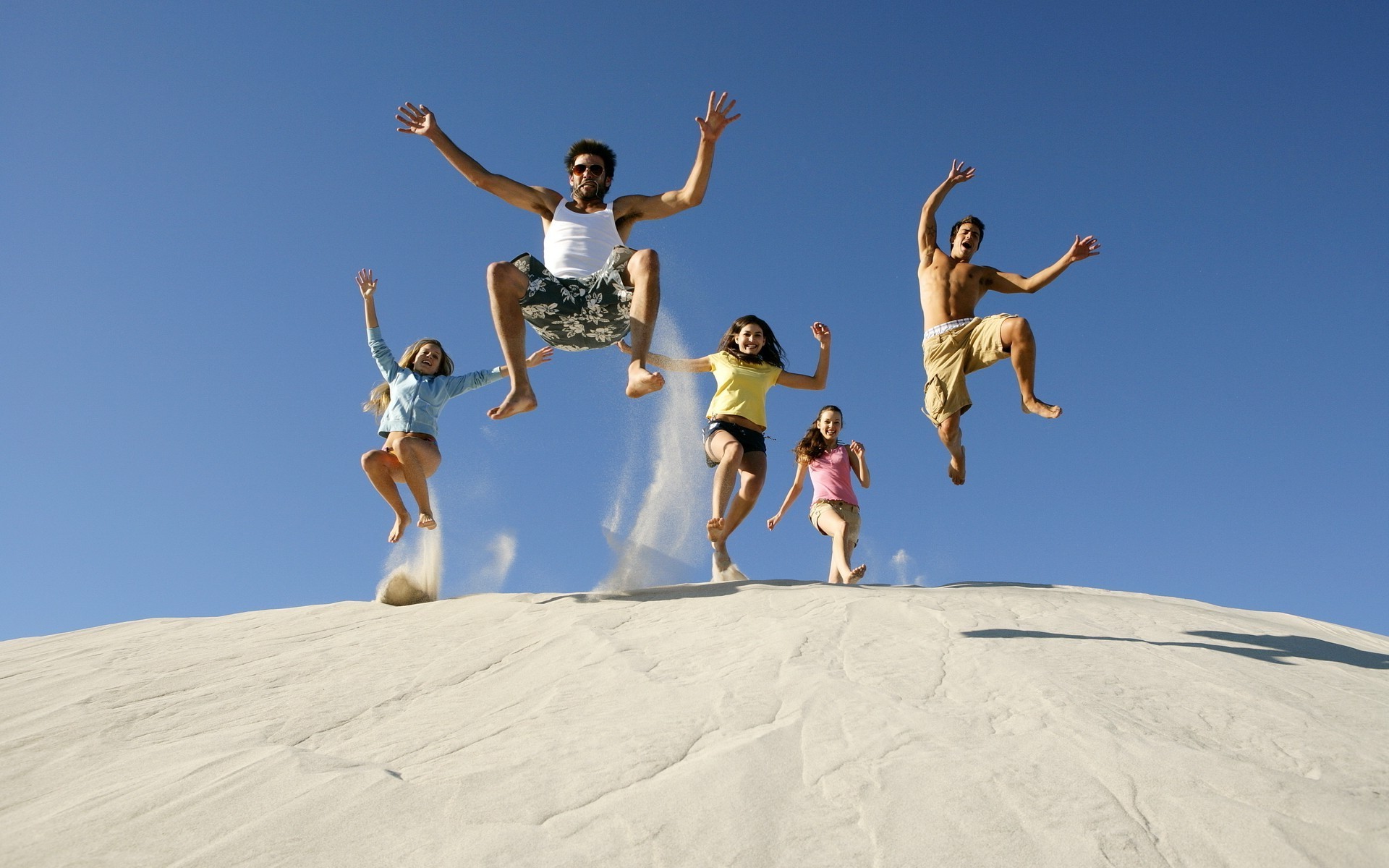 Pessoas felizes congeladas no salto