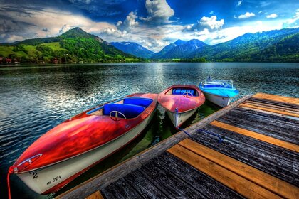Barcos no lago da montanha