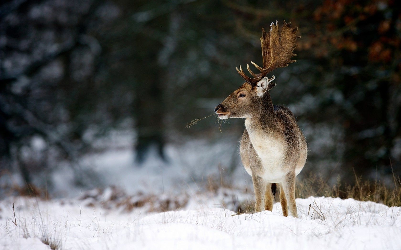 Cervo da floresta da floresta coberta de neve