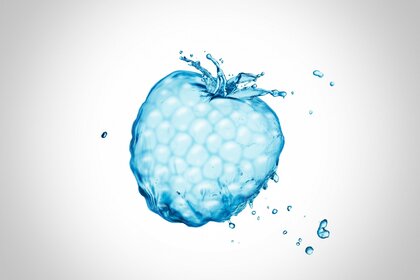 Morangos azuis incomuns da água com partículas voadorasMorangos azuis incomuns da água com partículas voadoras
