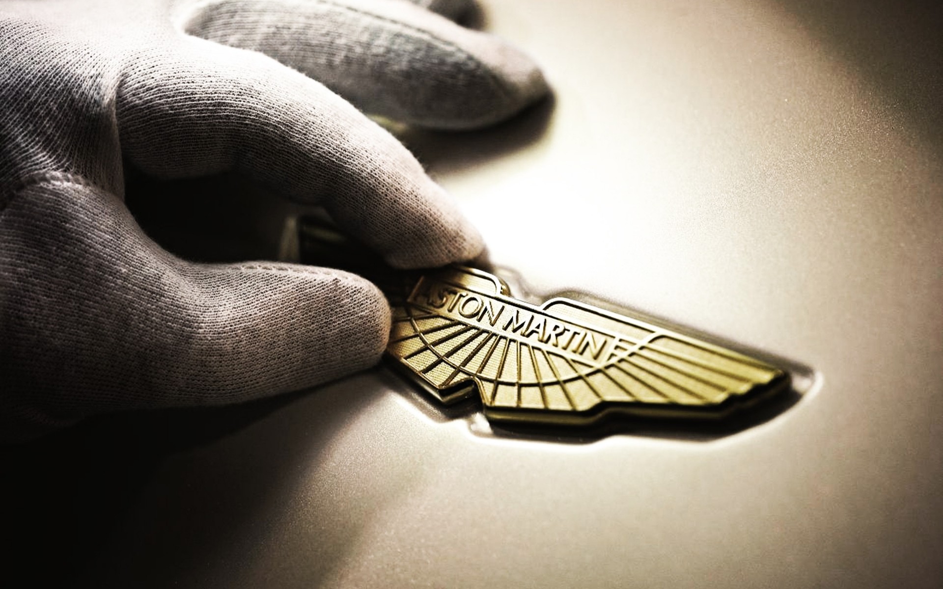 A mão do homem segura o emblema do carro